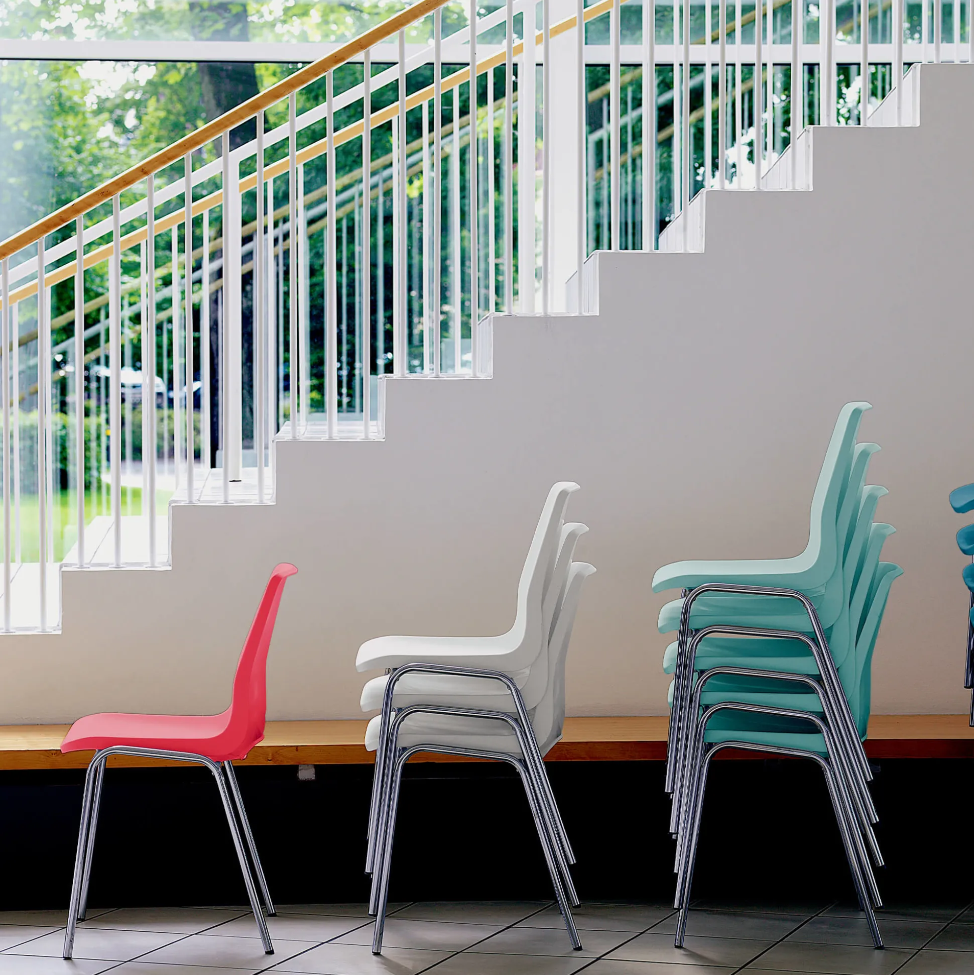 RBM Ana stolen er en populær klassiker indenfor kantinestole. Det er praktiske og solide stabelstole, der passer ind flere steder. Stolen er med blankt stel og plastskal. Den kan stables i op til 12 stk.