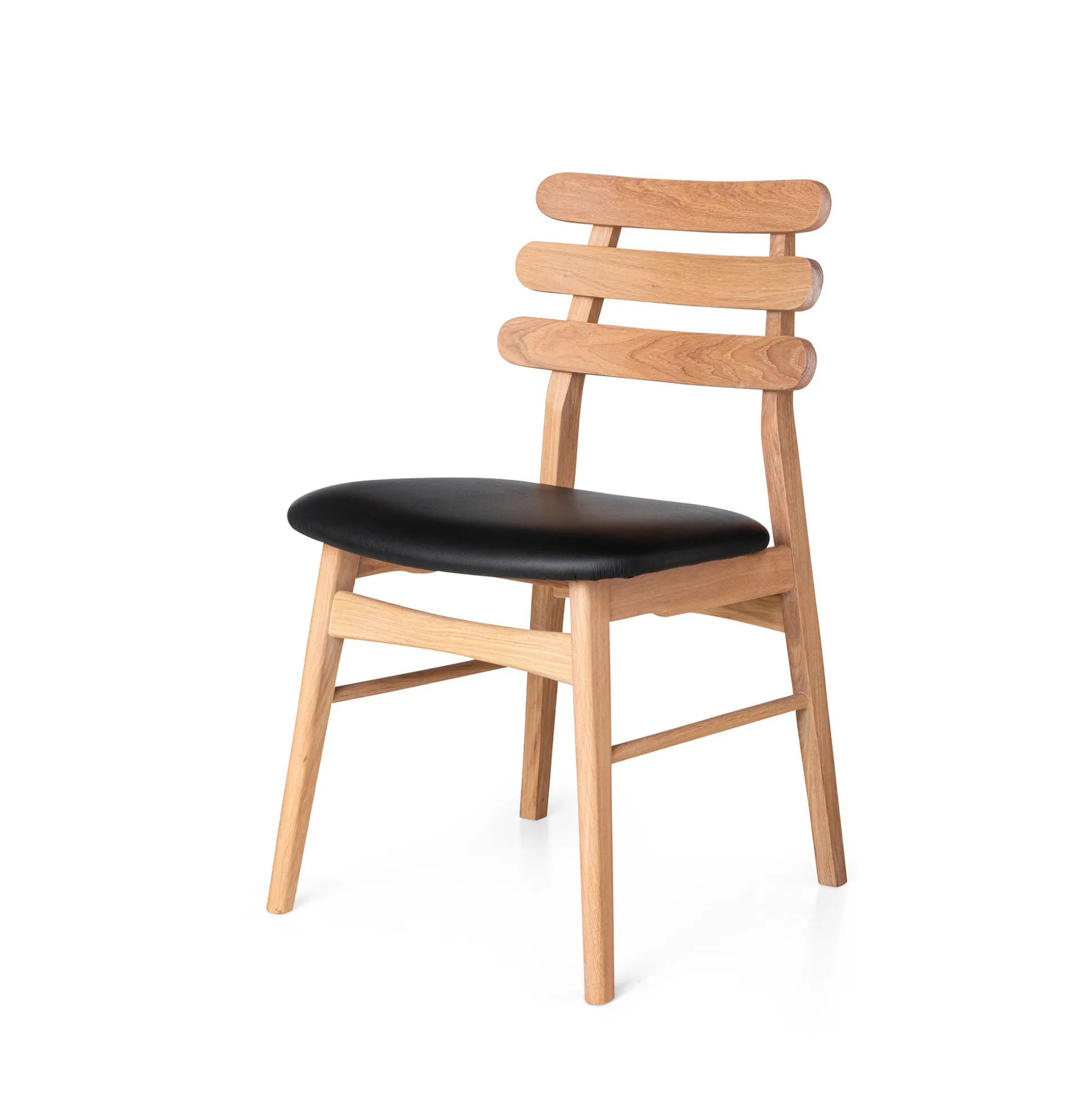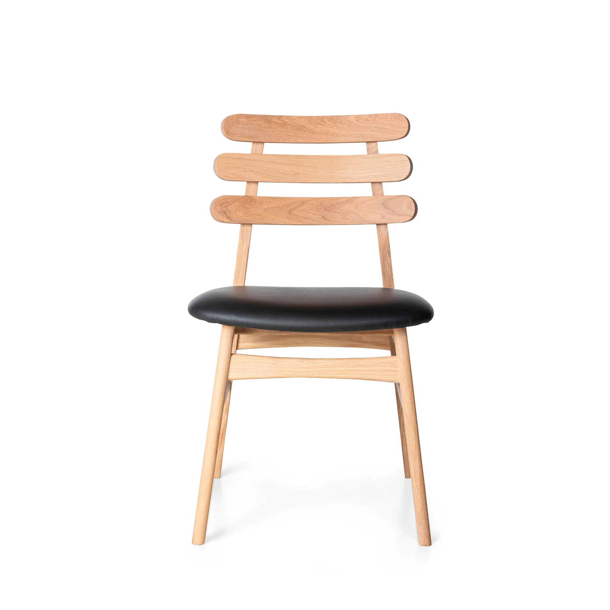 Nessstolen er en enkel og stilren stol, med stel i massivt hvidolieret eg. Stolens unikke rygdesign, giver både god støtte, og et eksklusivt udtryk.