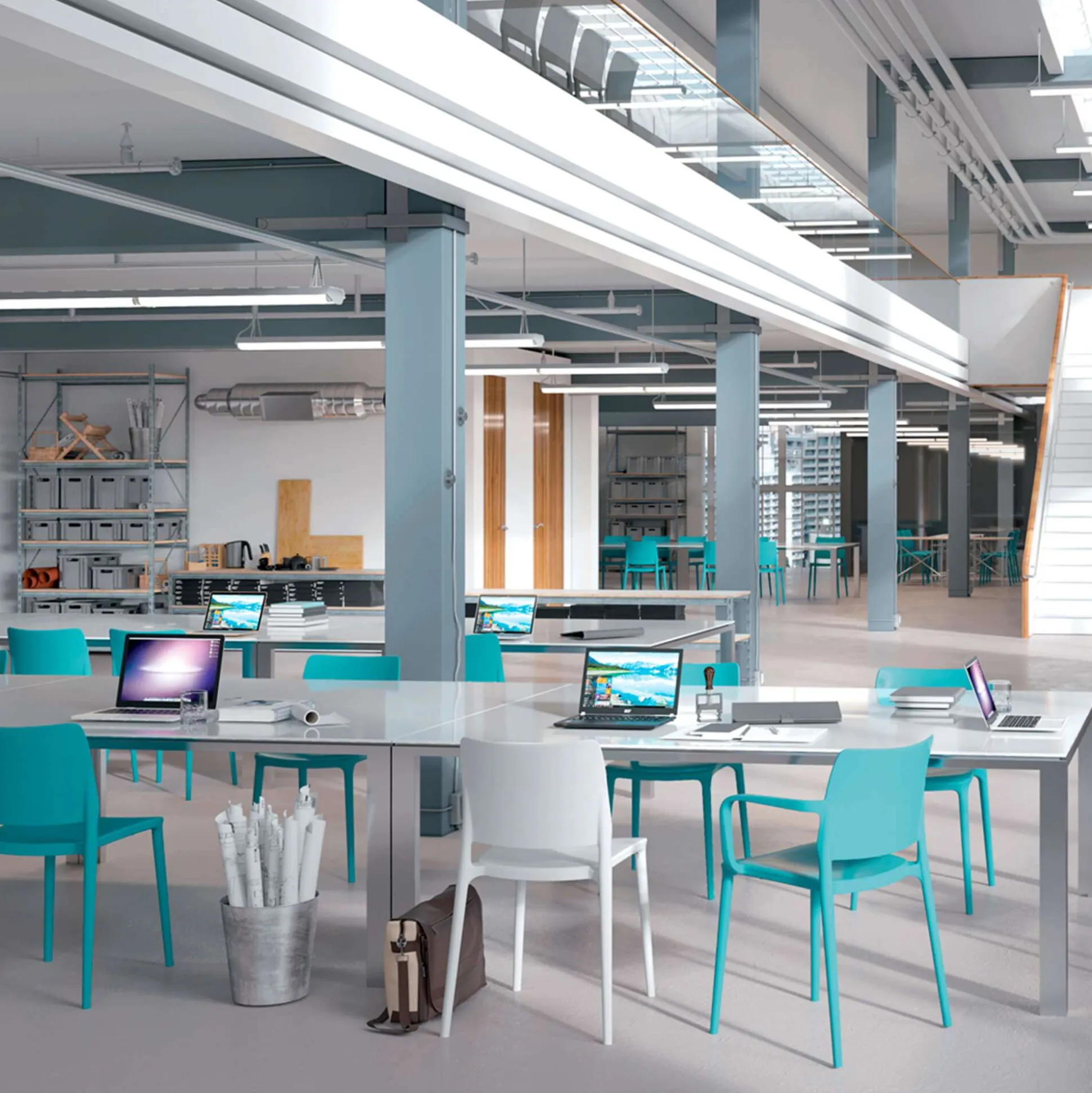 Salina er en flot stabelstol i et moderne og simpelt design. Stolen er helstøbt i glasfiberforstærker plast, hvilket gør den yderst robust og rengøringsvenlig. Den tåler både sprit, og alle gængse rengøringsmidler til almindelig husholdning. Stolen lagerføres både i blå, sort, mørkegrå og sandfarvet.