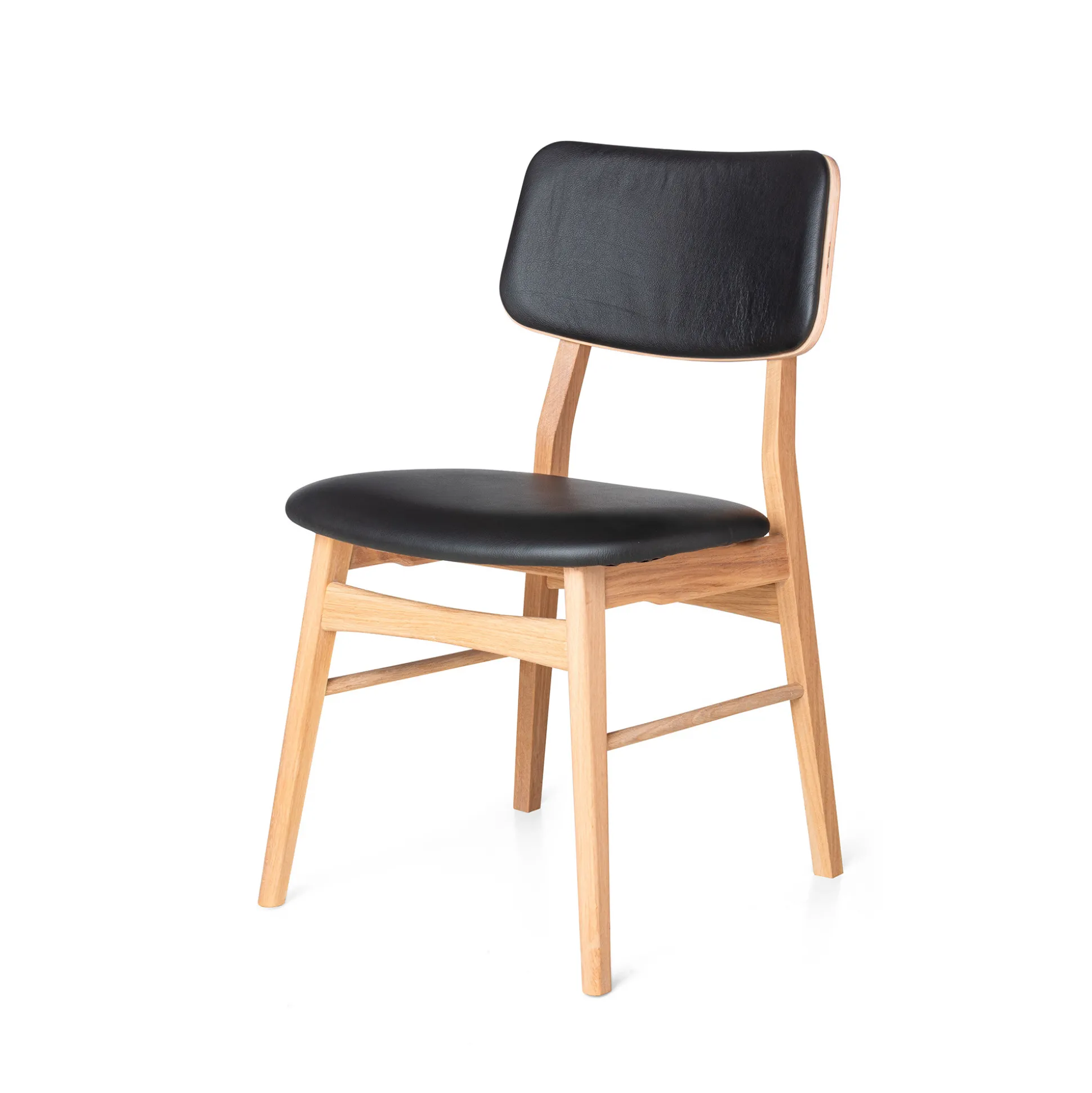 Praktisk læderbetrukket stol i hvidolieret eg