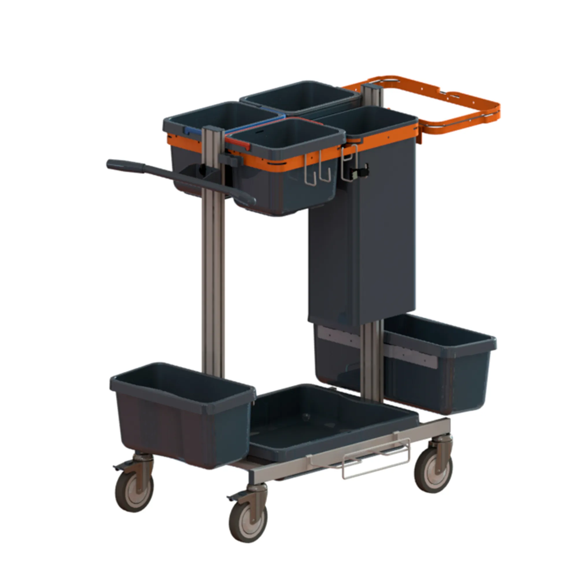 Taski Nano Medium 40 Box er en kompakt rengøringsvogn i god kvalitet til store og mellemstore områder. Håndtagene og de låsbare hjul gør den praktisk at have med rundt. Spandene og moppeboksene gør den perfekt til områder der kræver fugtige klude og mopper.