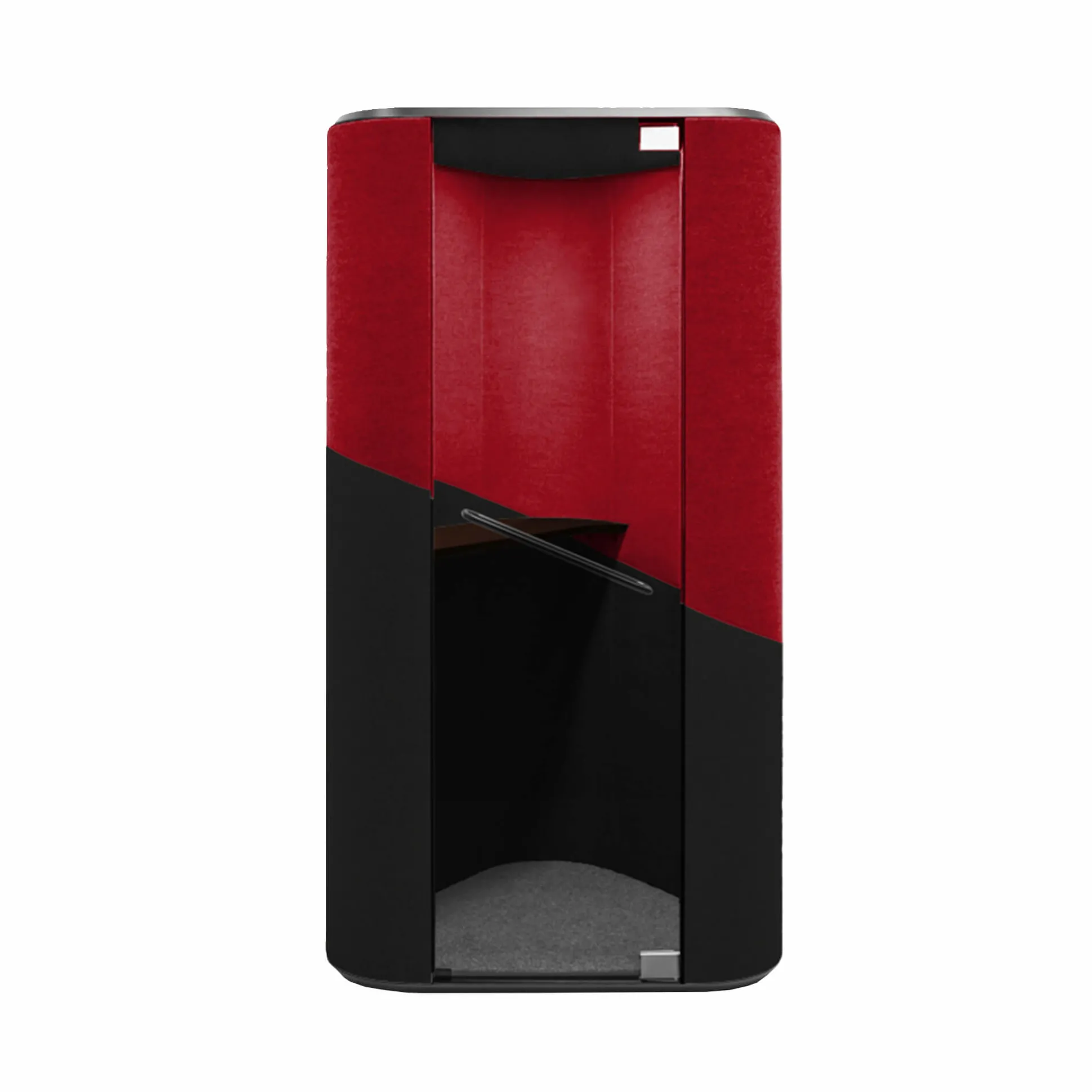 Private Zone telefonboks med lydabsorberende effekt. Den lydisolerende effekt gør, at støj udefra ikke kan høres inde i boksen og omvendt. Om det er et åbent kontormiljø, en reception eller i det offentlige rum, vil denne telefonboks med sin str. og konstruktion passe ind i de fleste miljøer.