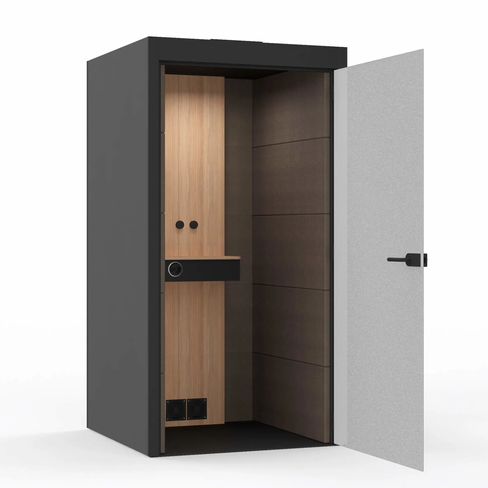 Stilren telefonboks med lyddæmpende materialer