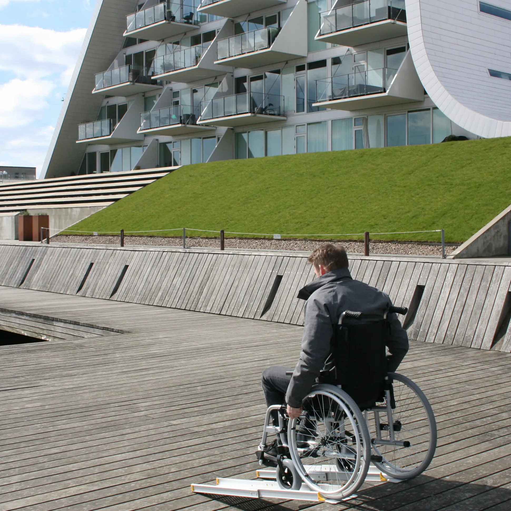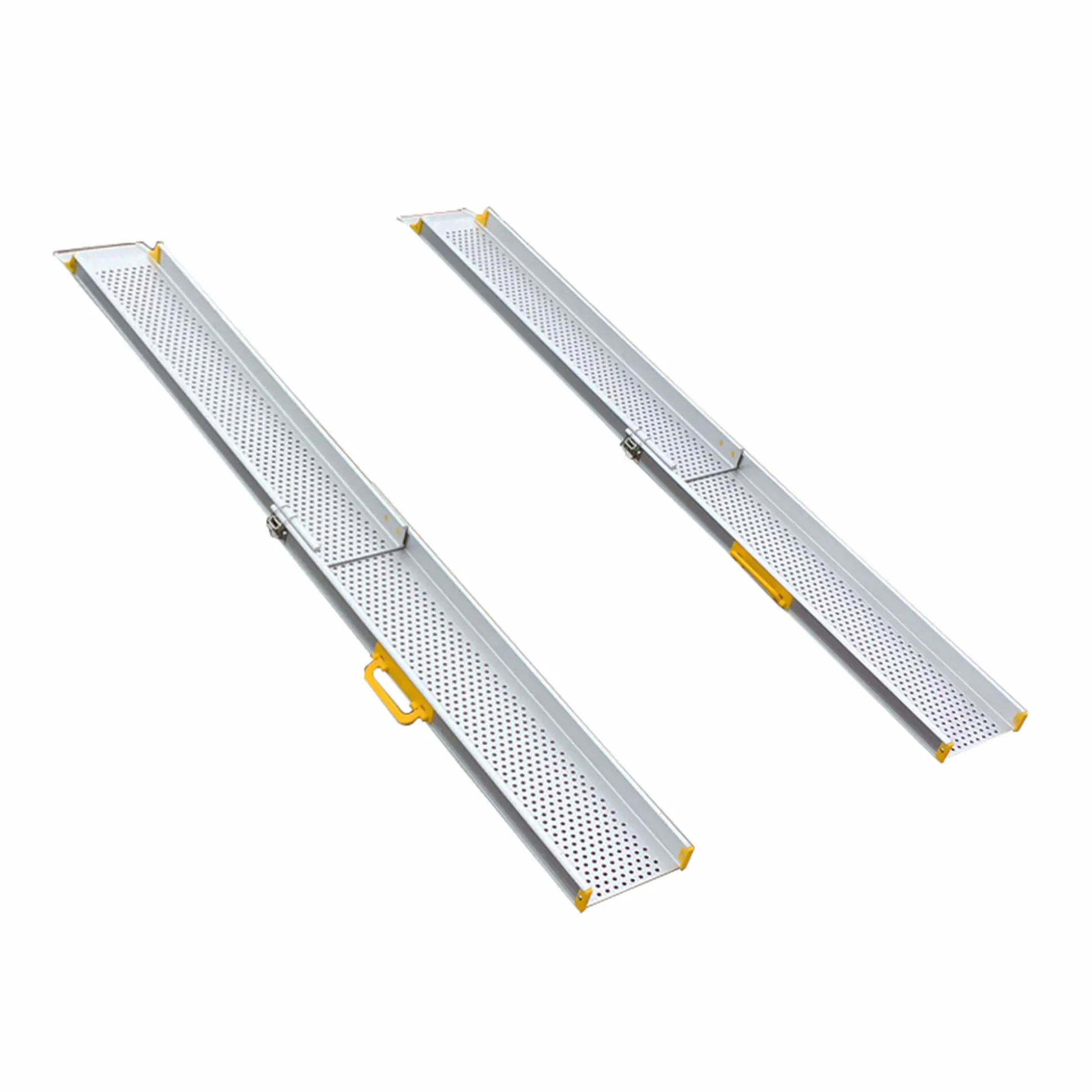 Teleskopisk rampe som kan justeres til ønsket længde. Med riflet og dermed skridsikker overflade. Ideel til vogne, kørestole, transportbure og lign. Maksimal belastning pr. par: 270 kg.