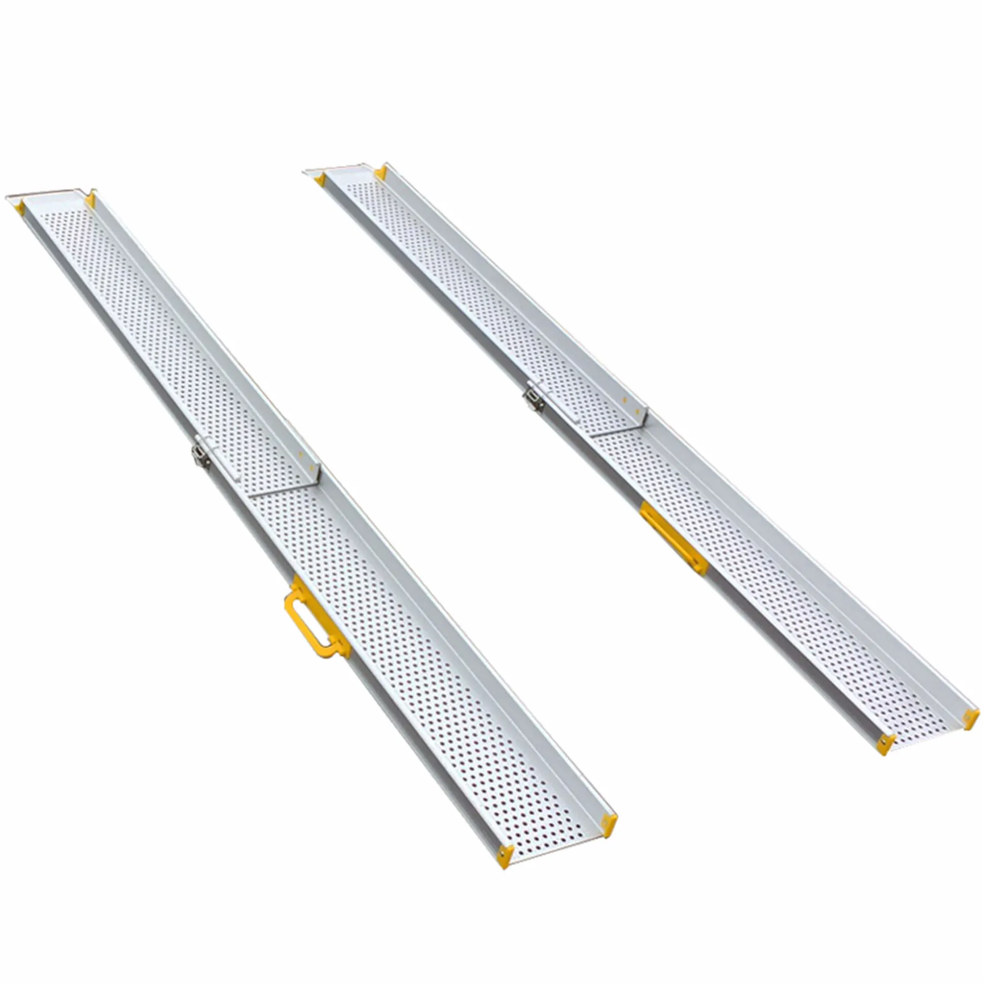 Teleskopisk rampe som kan justeres til ønsket længde. Med riflet og dermed skridsikker overflade. Ideel til vogne, kørestole, transportbure og lign. Maksimal belastning pr. par: 270 kg.