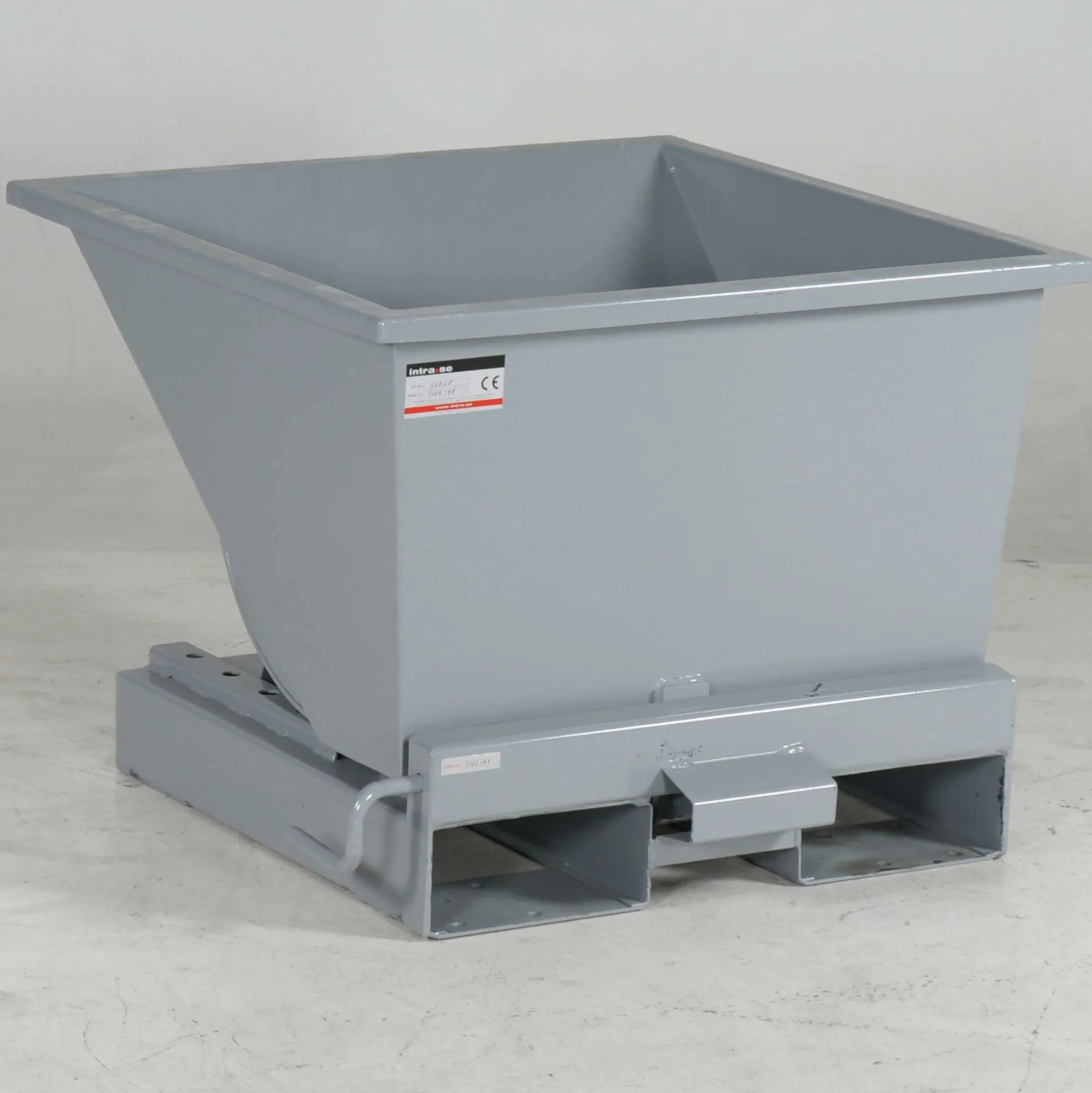 Det er også muligt manuelt at tømme containeren med det indbyggede håndtag på siden. Containeren er CE-mærket, og har du nogle spørgsmål til containeren, eller ønsker du et samlet tilbud til lageret, så kontakt os allerede i dag.