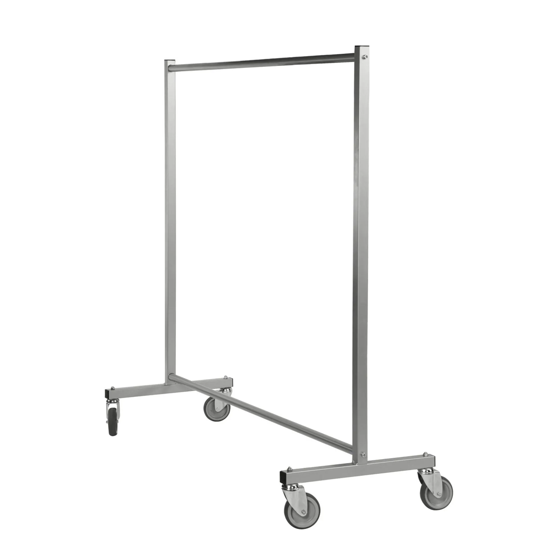 Tøjstativ i kraftig stålkonstruktion, kan klarer en belastning på op til 150 kg. Stativet er i grå pulverlakeret stel, med kraftige Ø12,5 cm hjul. Tøjstativet på hjul har længde 142 og højde 170 cm.