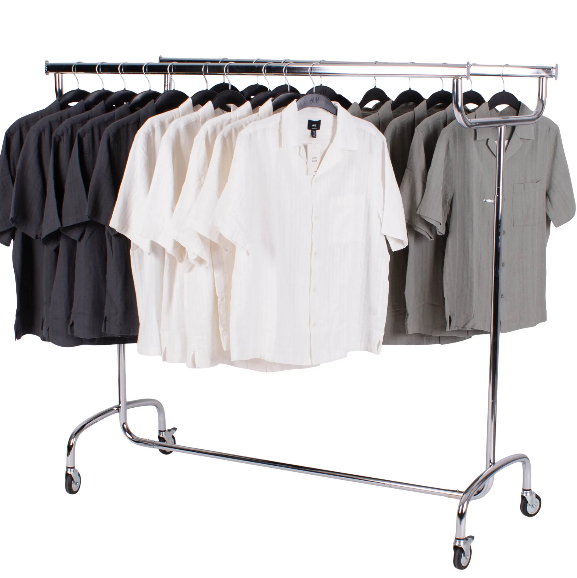 Ved brug af stativ med 2 bøjlestænger, får du mere bøjleplads og volumen på mindre kvadratmeter. Du har hængeplads på begge sider af stativet, som gør det optimalt til garderobe eller udsalgs i butik eller som gadestativ.