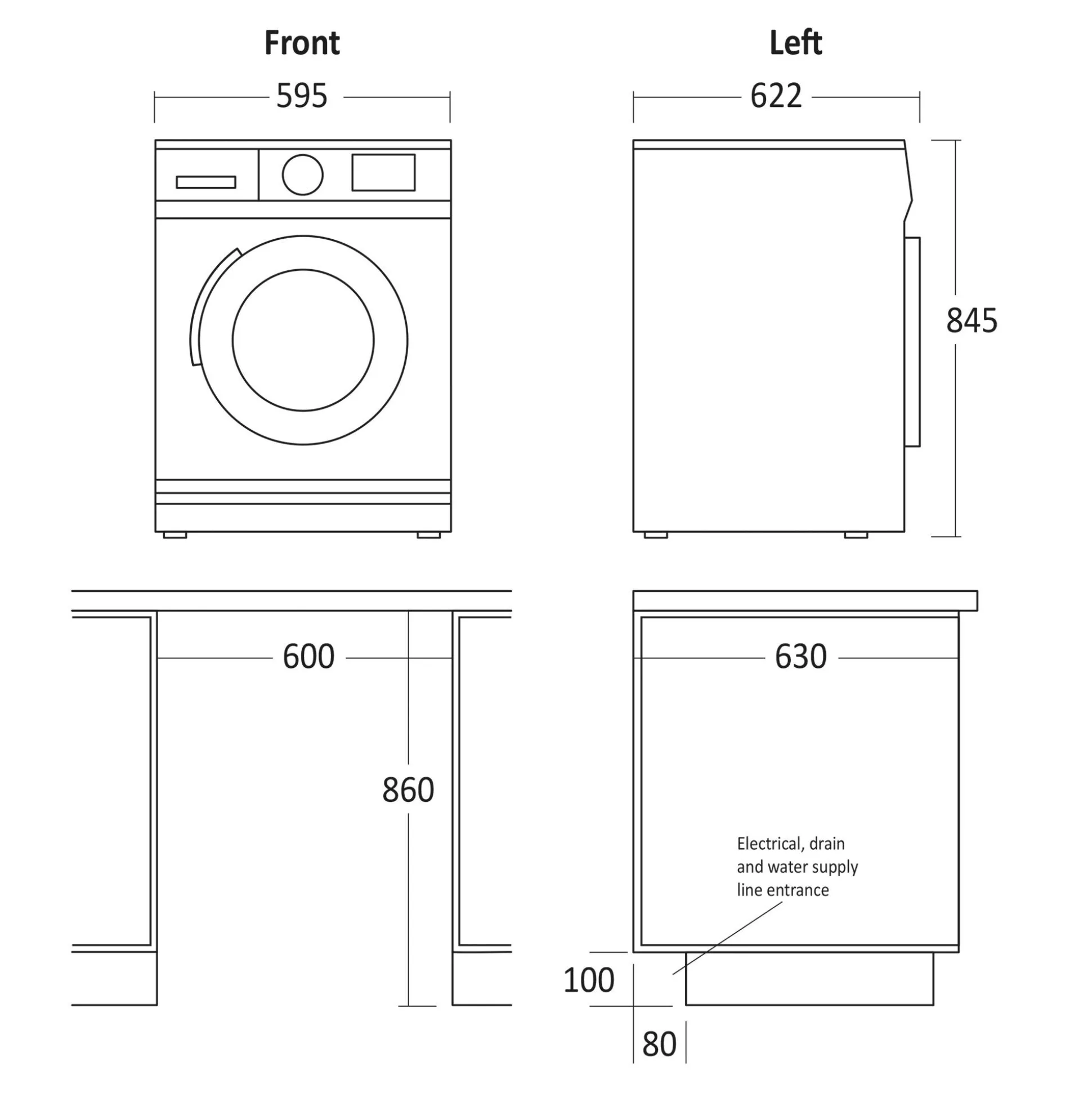 - Produktmål, HxBxD, mm: 845 x 595 x 600