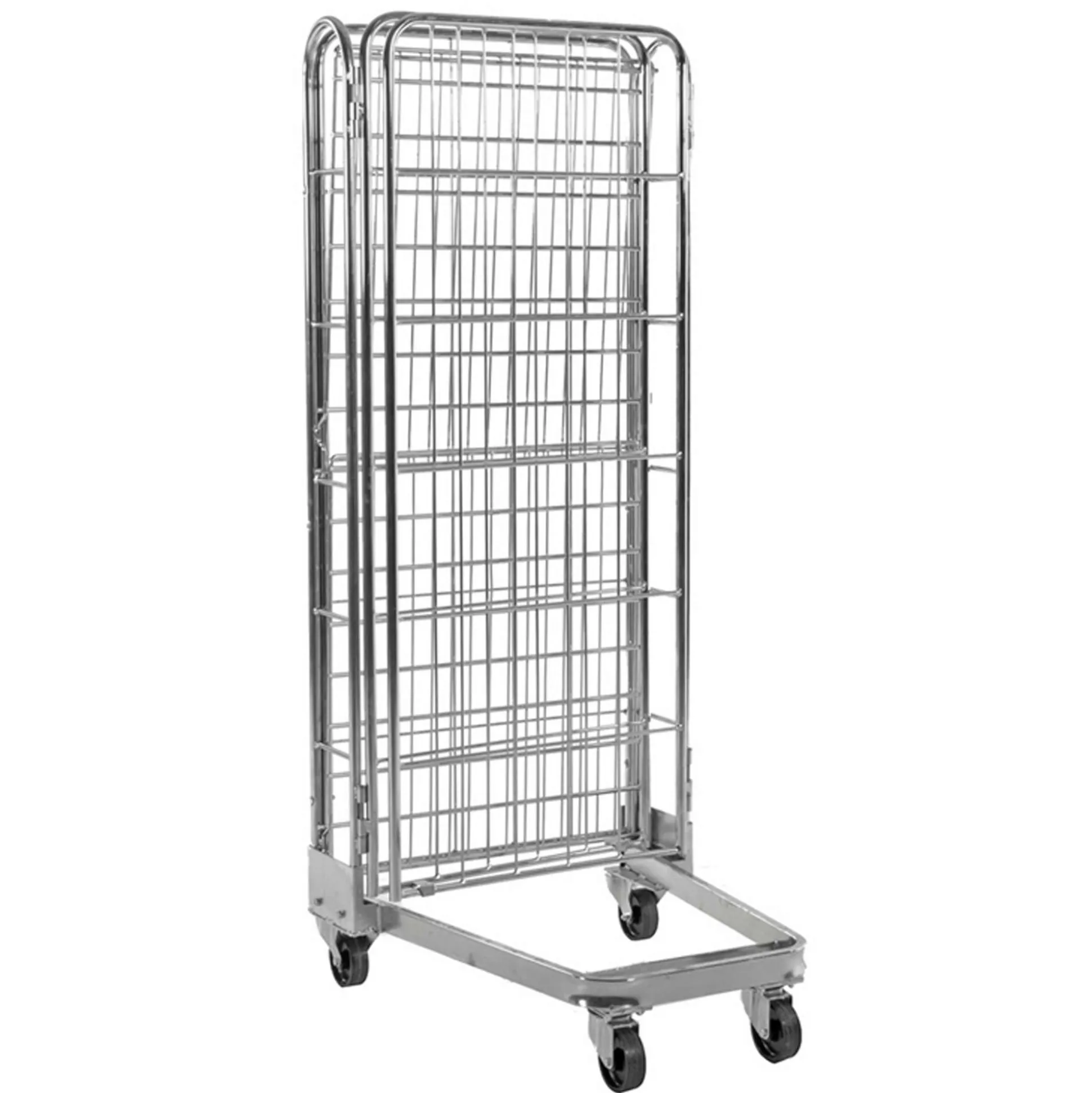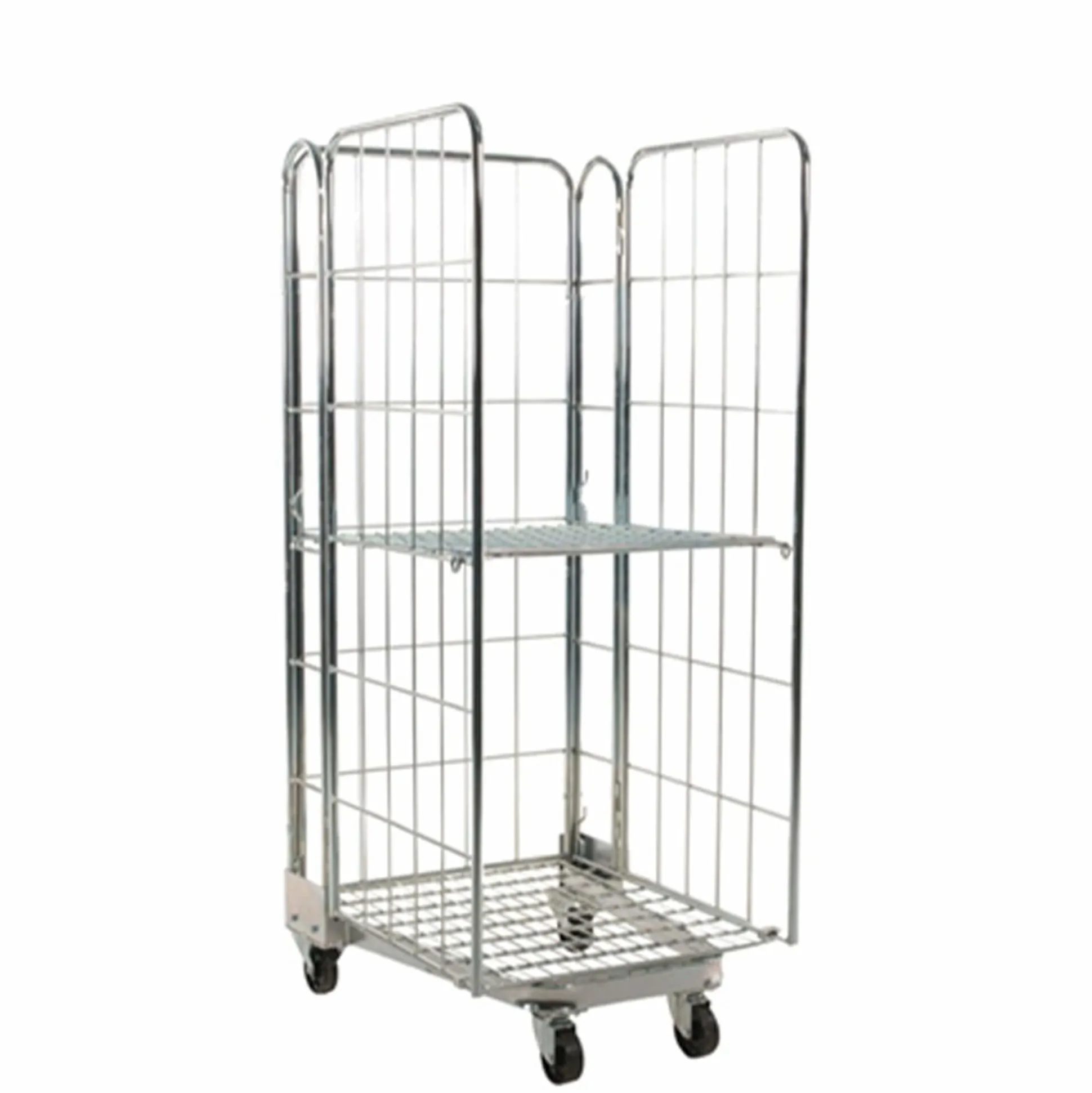 Stabelbar transportbur – kan slås sammen og burene køres ind i hinanden, hvilket er pladsbesparende når den ikke er i brug. Inkl. 1 hylde. Leveres elforzinket. Med 3 vægge og 4 hjul, heraf er 2 faste og 2 svingbare, Ø 10 cm.