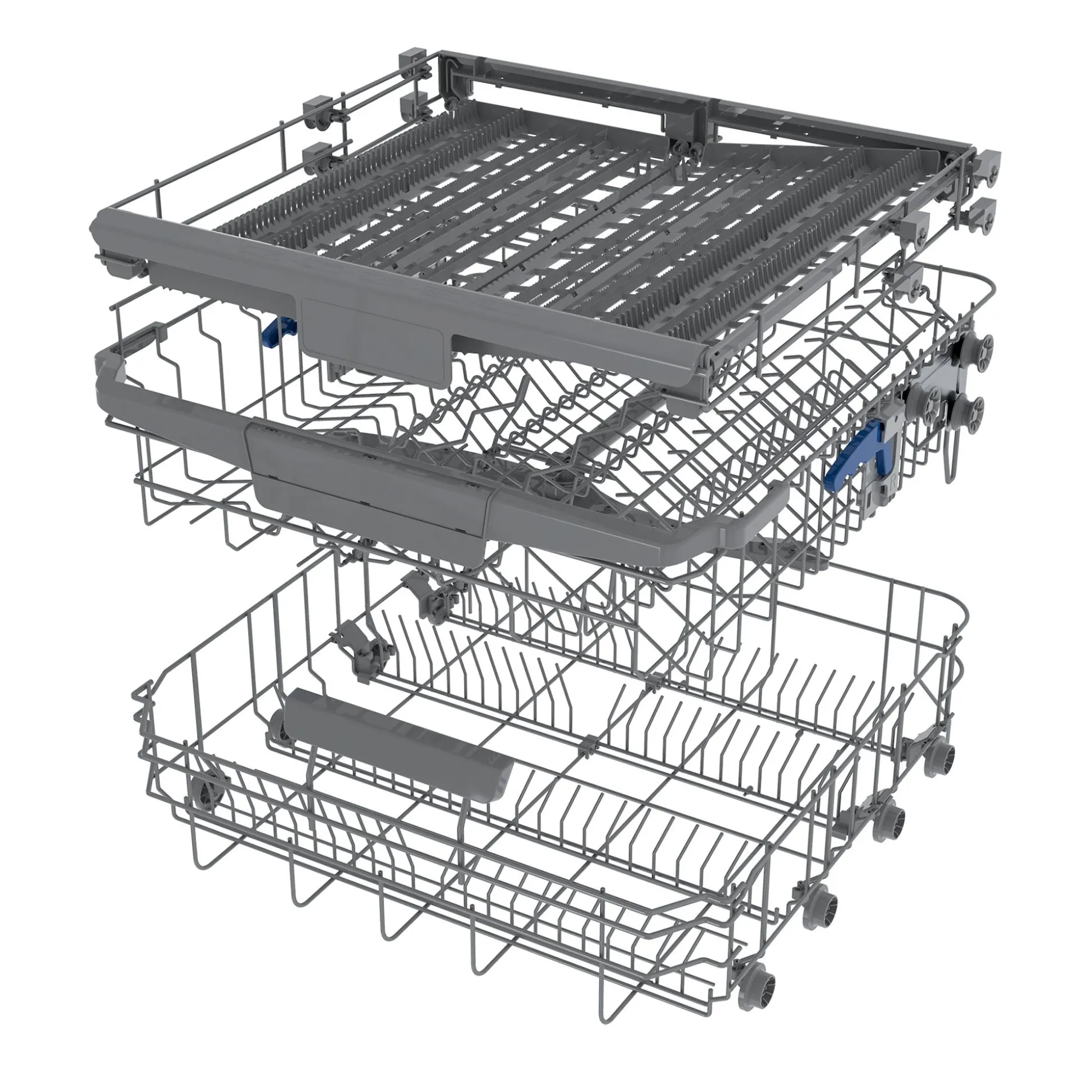 Øverste bestikbakke giver dig ekstra plads i underkurven, og da bestikket ligger adskilt, og aldrig klynger sammen, opnås et bedre vaskeresultat og ridser undgås også. Ud over at bestik bliver mere rent i denne bakke, så er der også en hygiejnisk fordel ved tømning af bestik, da man ikke berører spisehovederne, som man gør ved standard bestik kurve. Ydermere kan bestikbakken også skubbes sammen, så der bliver plads til høje glas i den mellemste kurv. Den øverste kurv giver ikke bare plads til bestik, men også til grydeskeer, salatbestik og mindre servicedele, som f.eks. espressokopper.