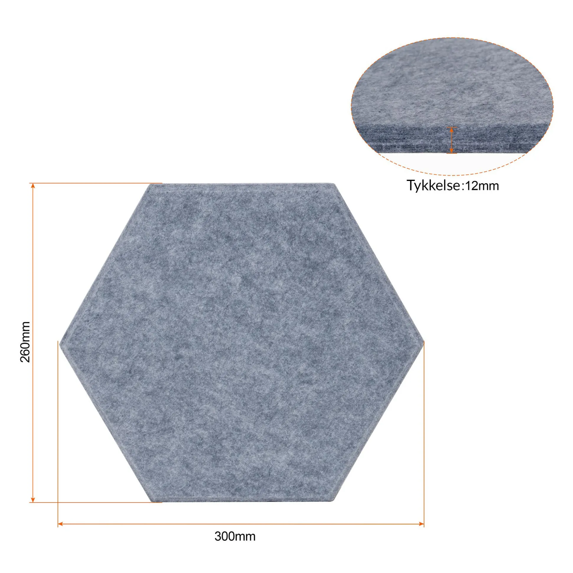 Vores lydabsorberende vægpaneler i en moderne hexagonform på 26×30 cm er det perfekte valg til at forbedre akustikken på kontoret, i hjemmet eller ethvert andet rum. Med en dybde på 12 mm giver disse paneler en effektiv lydabsorbering, der reducerer støjniveauet og skaber en mere behagelig og rolig atmosfære. Det selvklæbende tape på bagsiden gør monteringen enkel og problemfri, så du hurtigt kan nyde fordelene ved en forbedret lydkvalitet. Panelerne er ideelle til både hjemmet og kontoret, og deres elegante design tilføjer et stilfuldt look til din indretning.