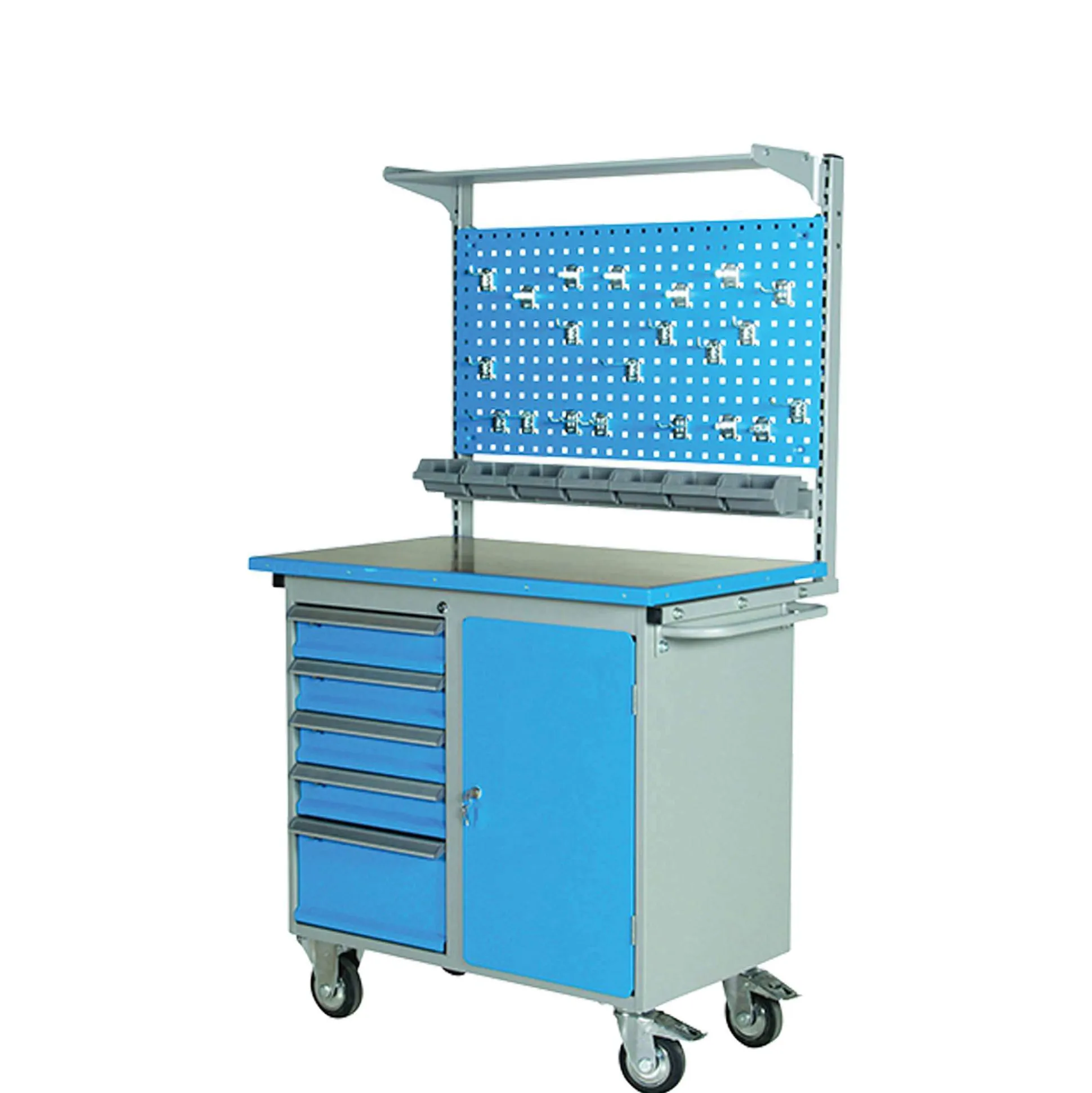 Værkstedsvogn m. 5 skuffer, 1 låge samt værktøjstavle med tilbehør. Top i massiv bøg.
