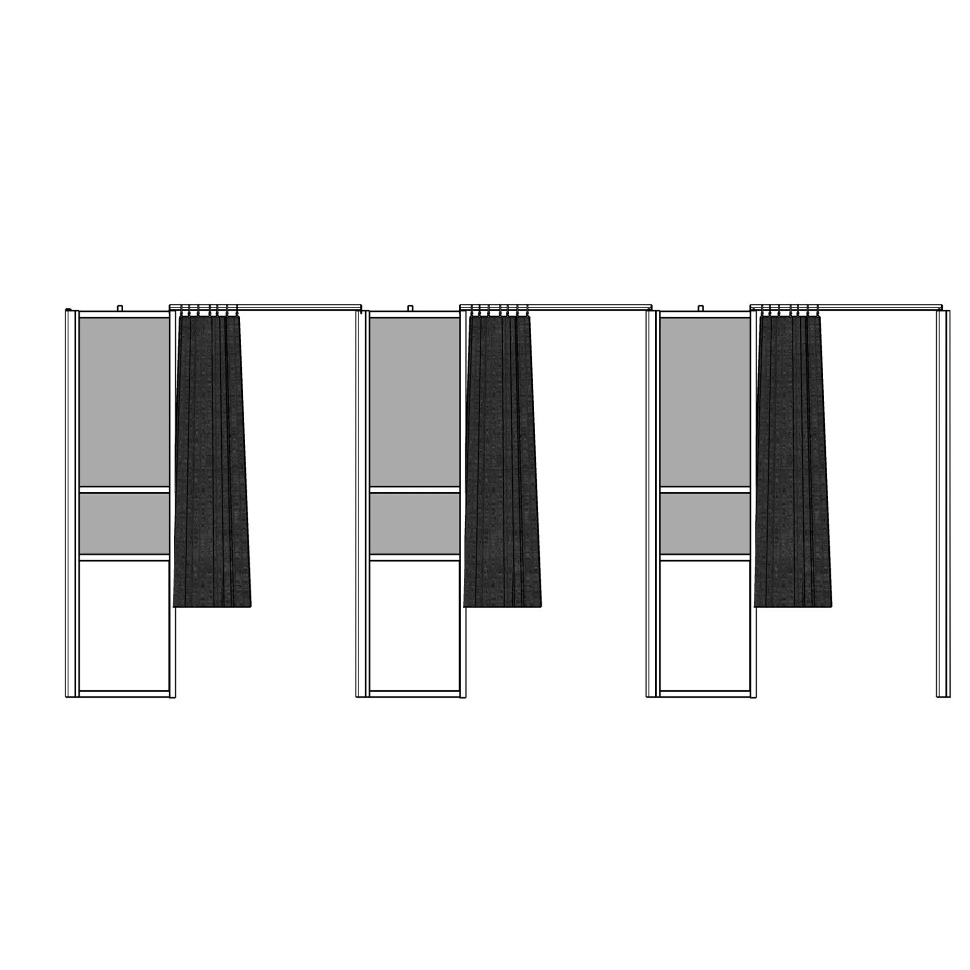Der medfølger en skriveplade, denne kan placeres i 2 niveauer så den også kan passe i højden til kørestolsbruger, 2 gardinstænger og gardin som let sættes på uden værktøj samt en endevæg.