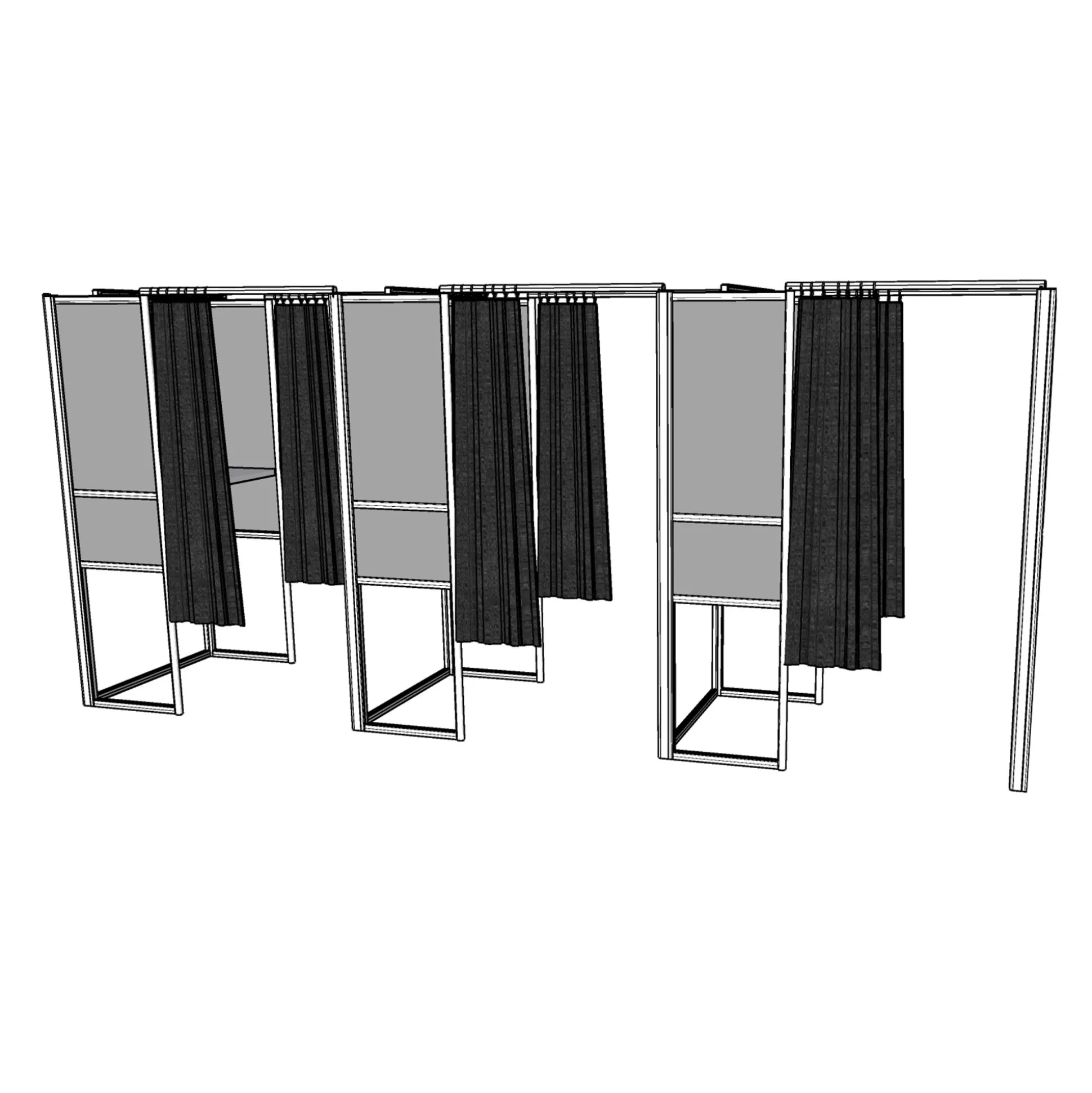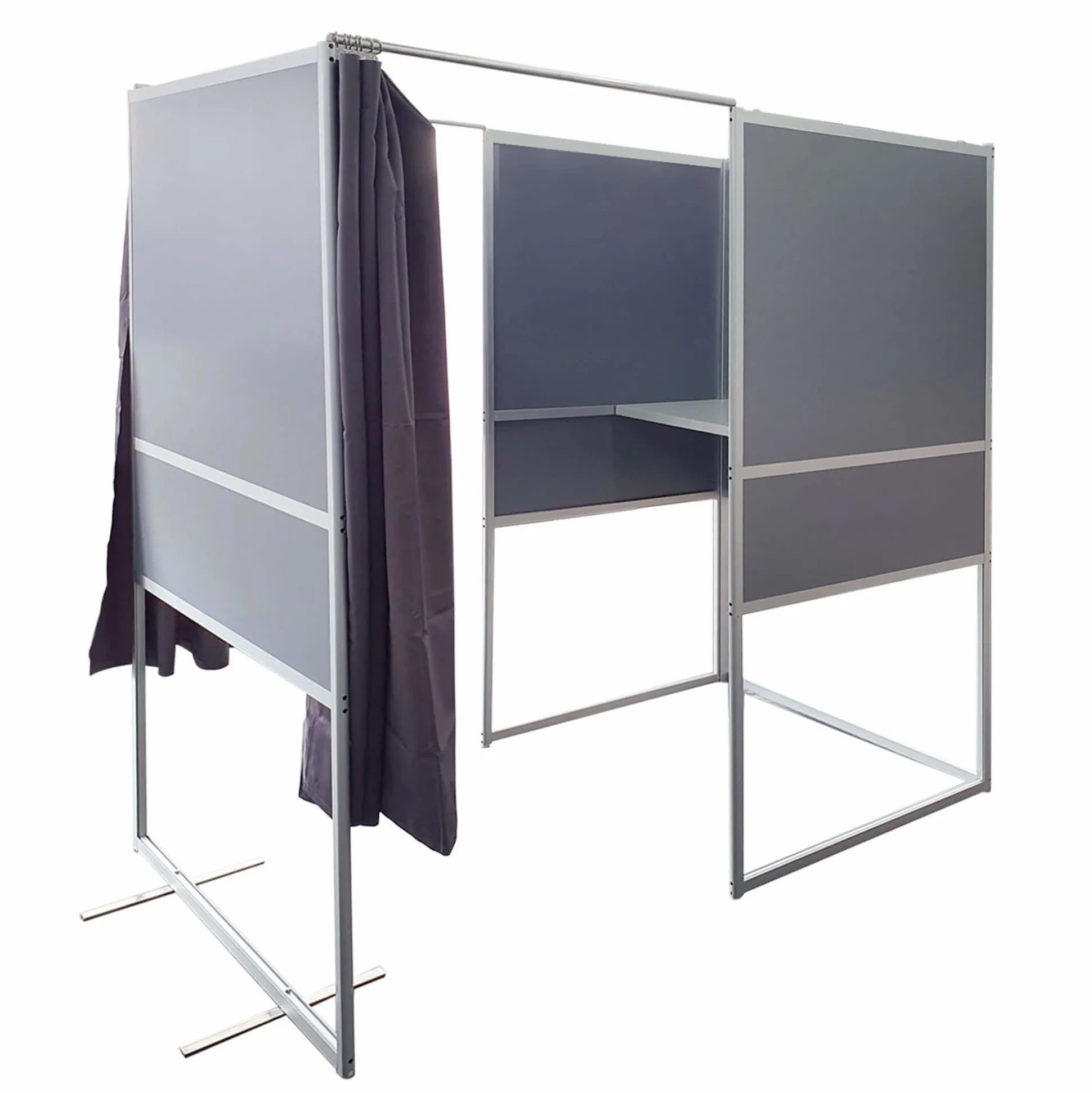 Der medfølger en skriveplade, denne kan placeres i 2 niveauer så den også kan passe i højden til kørestolsbruger, 2 gardinstænger og 2 sæt gardin til hver valgboks, som let sættes på uden værktøj. For enden af opstillingen er indsat en endevæg.