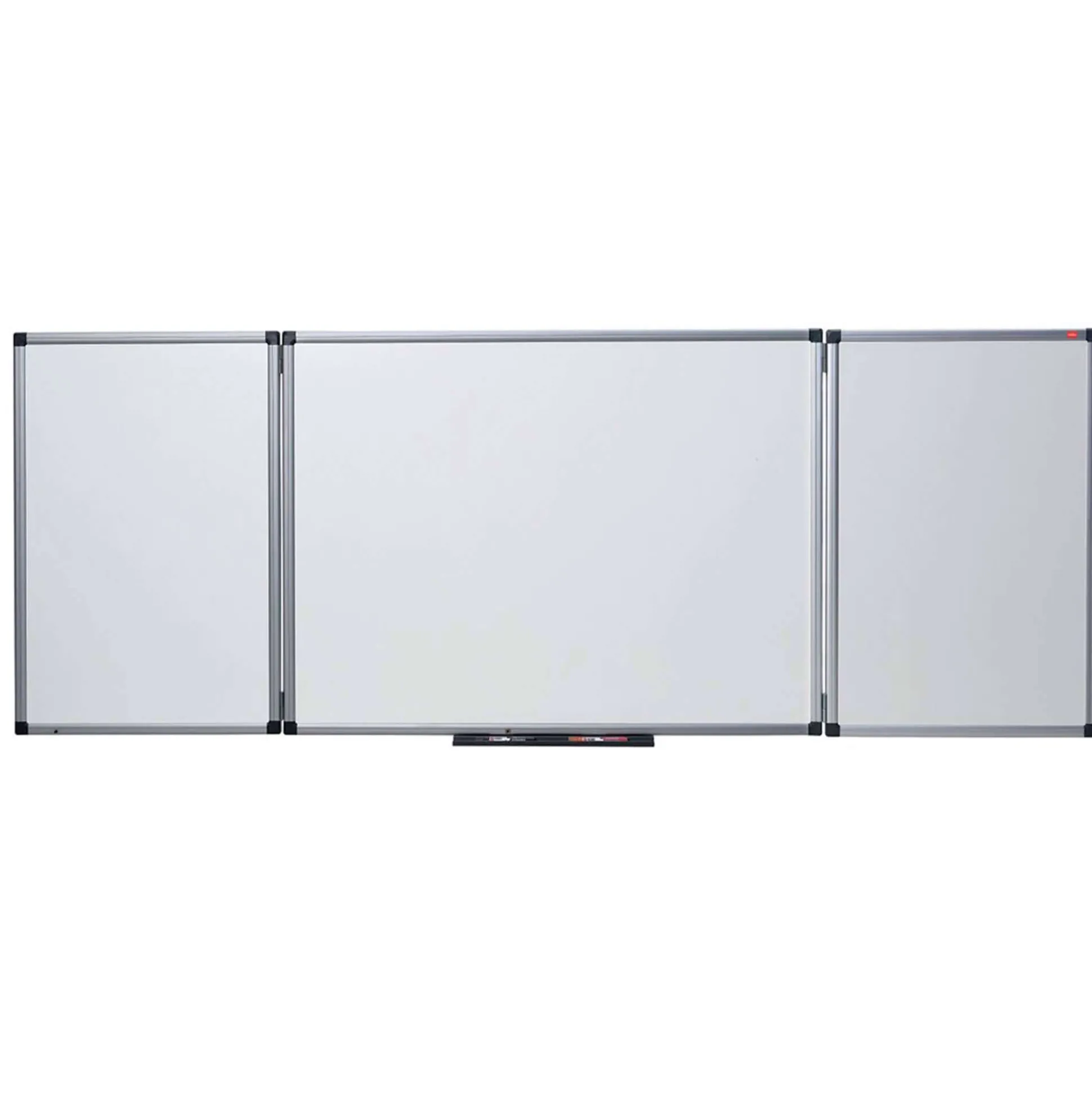 2 hængslede dry wipe paneler der giver 5 magnetiske skriveoverflader. Pennebakke og vægmonteringssæt inkluderet.