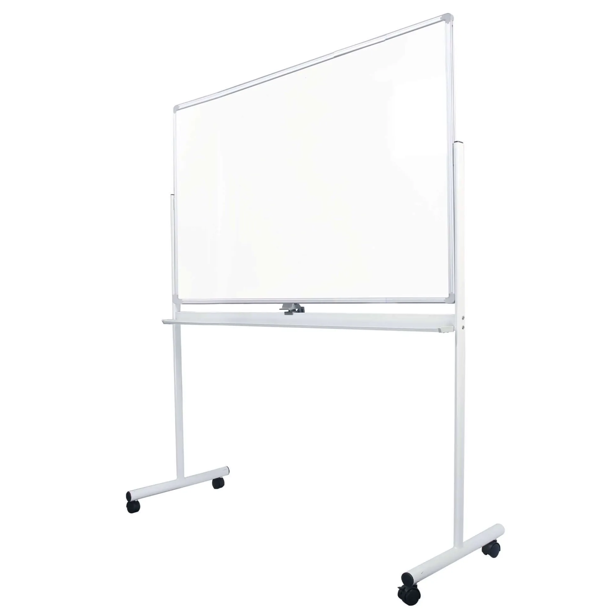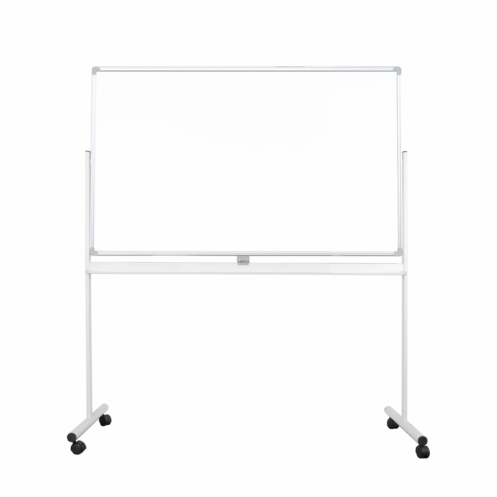 Klassisk 150×90 cm vendbart whiteboard tavle på hjul – perfekt til brug i kontormiljøer, klasseværelser og andre steder, hvor der er behov for en fleksibel tavle. Tavlen har en dobbeltsidet magnetisk lakeret ståloverflade, som kan vendes 360 grader og nemt flyttes rundt på grund af dens låsbare hjul. Den er også udstyret med en praktisk pennebakke i fuld længde.