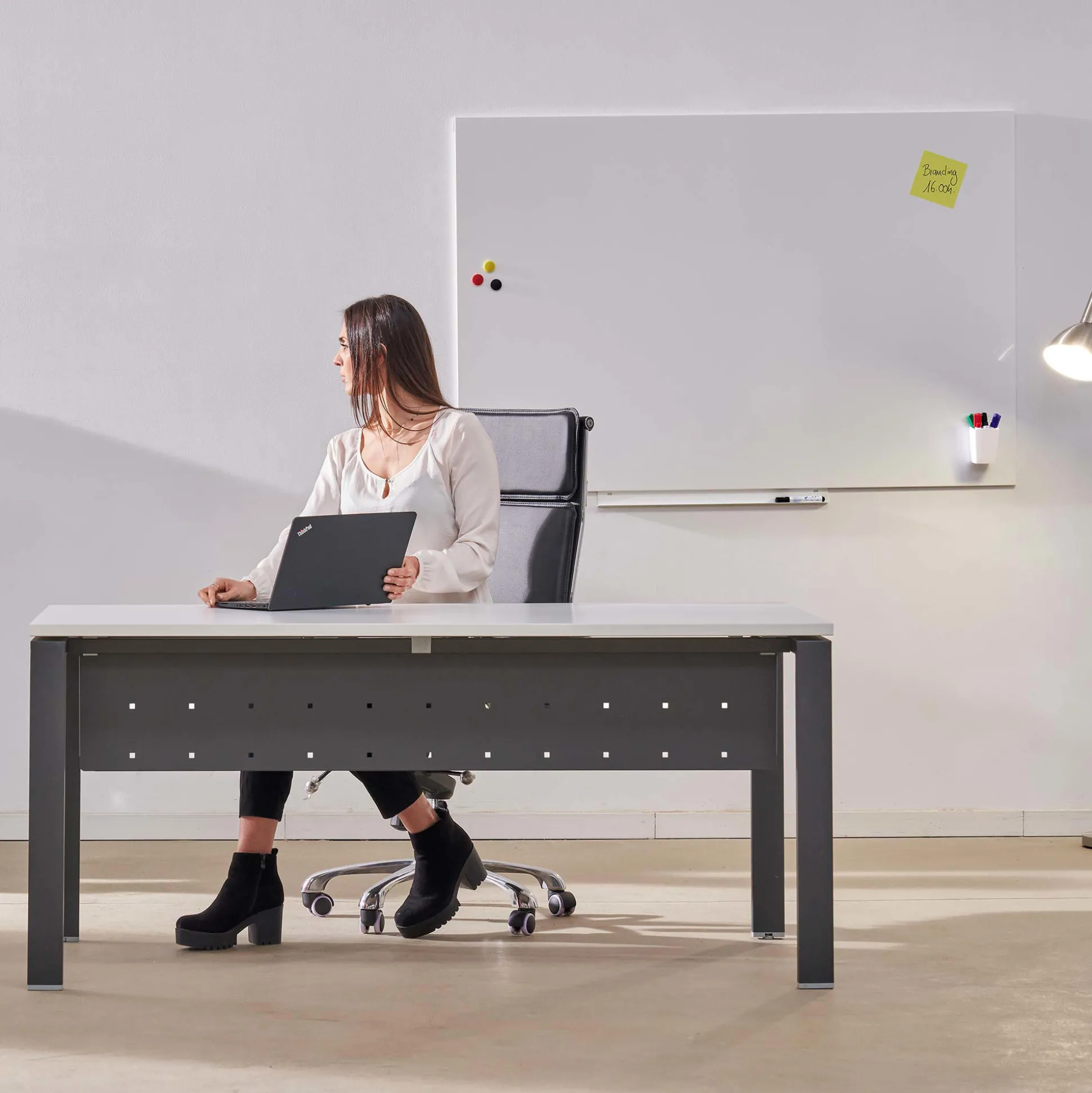 Whiteboard tavlen er lavet af holdbart stål med en tykkelse på 0,7 mm. Den er lakeret og har en PET-belægning, der sikrer holdbarhed og beskyttelse mod slid. Overfladen giver en perfekt og glat skriveoplevelse, er nem at rengøre og kræver minimal vedligeholdelse. Den leveres med en standard overfladefinish med 5 års garanti.