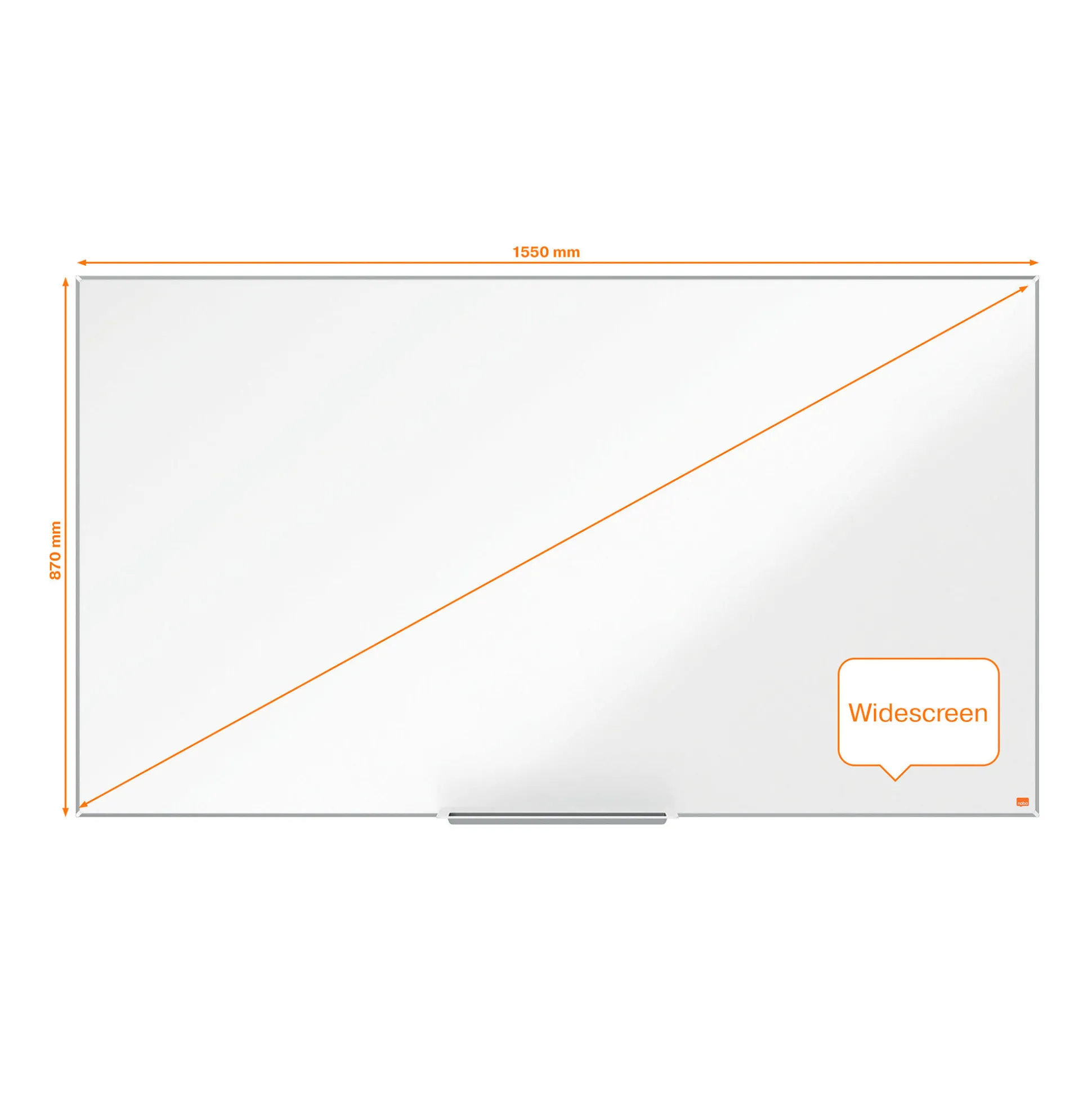 Moderne 155×87 cm Nobo widescreen whiteboard med magnetisk overflade og stilfuld ramme