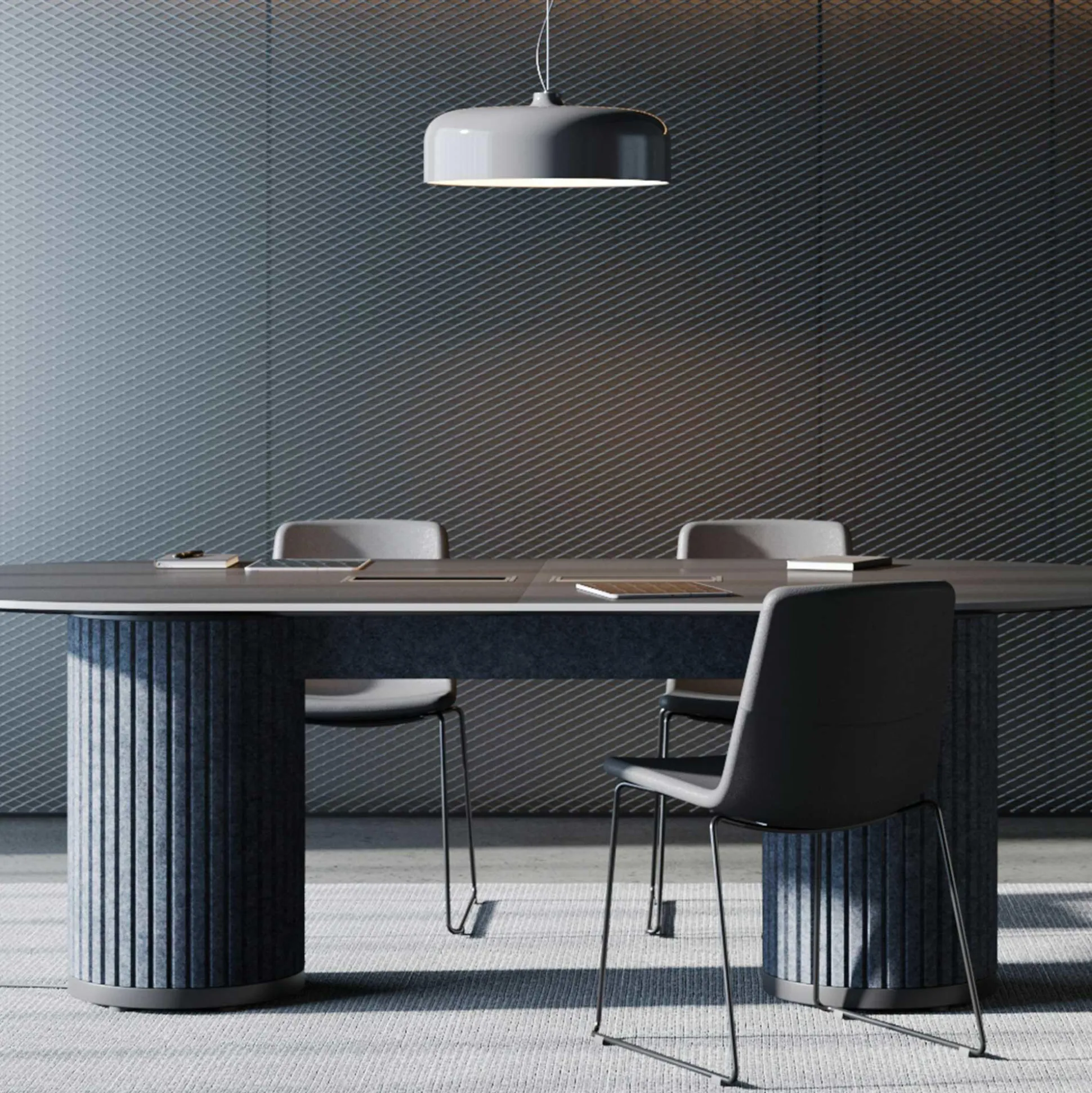 Med dette mødebord får du ikke blot en stilren løsning i bæredygtige materialer, men du forbedrer samtidig også akustikken i rummet. Søjlen fås i flere forskellige farver, og bordpladen er i slidstærk antracitgrå decor laminat.