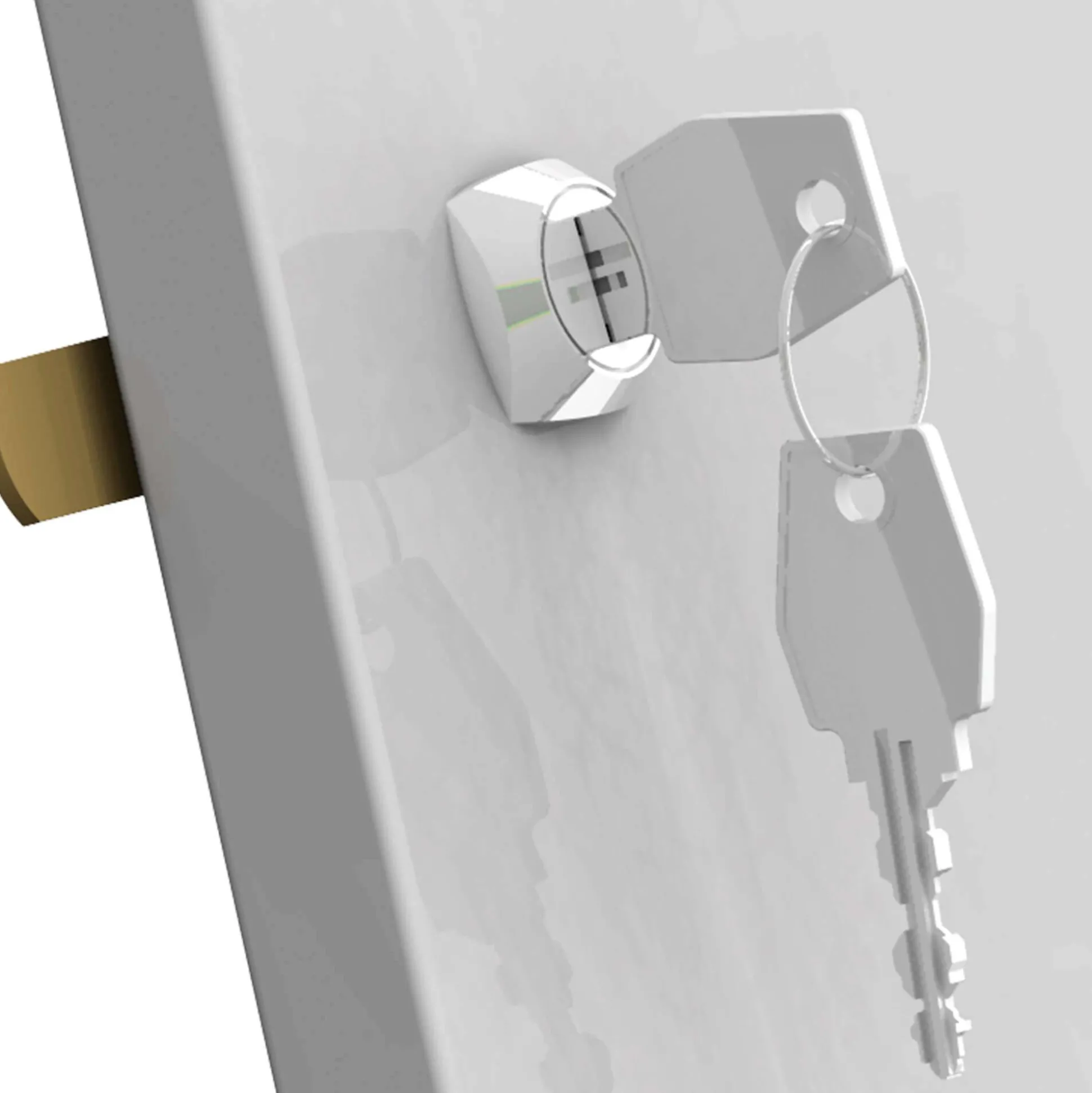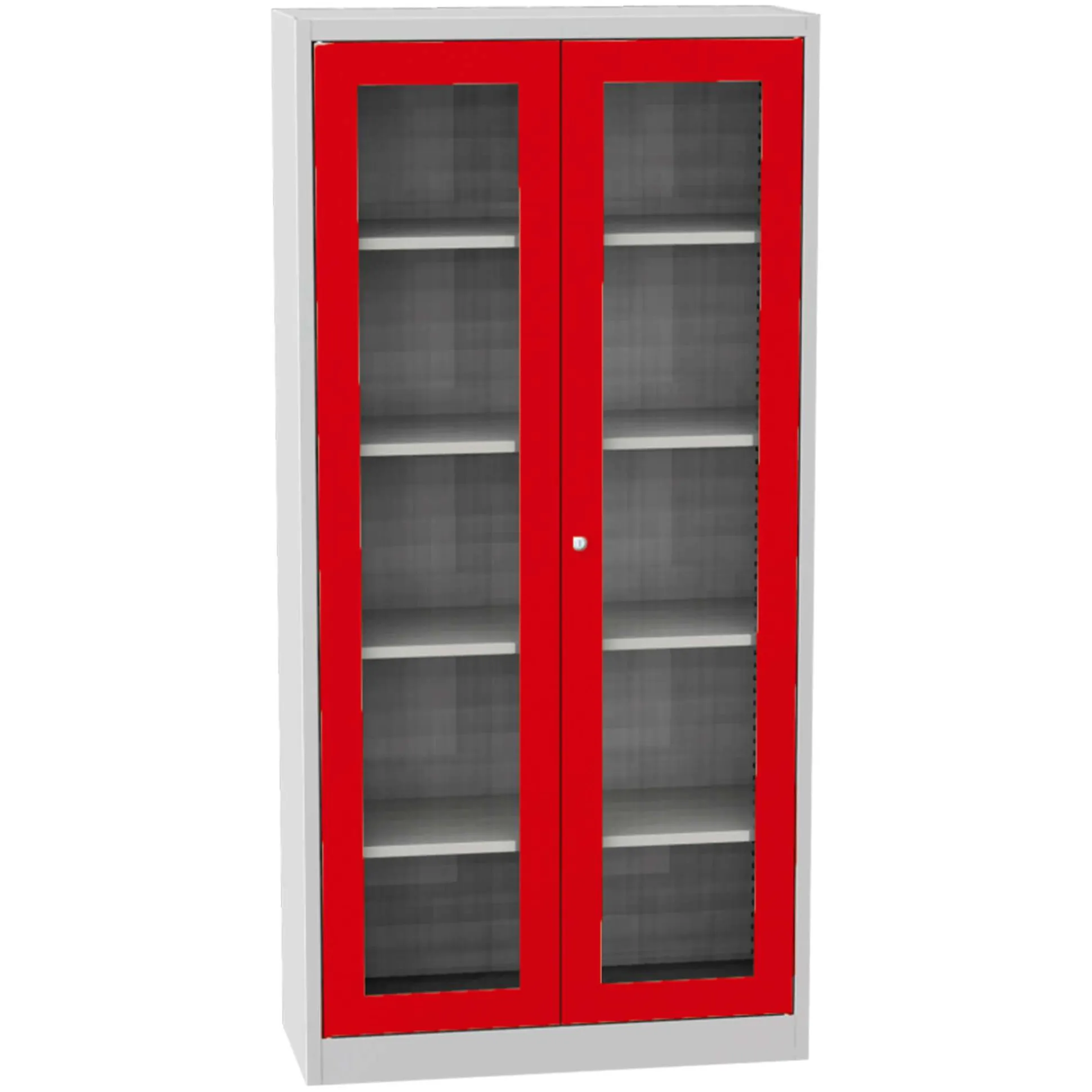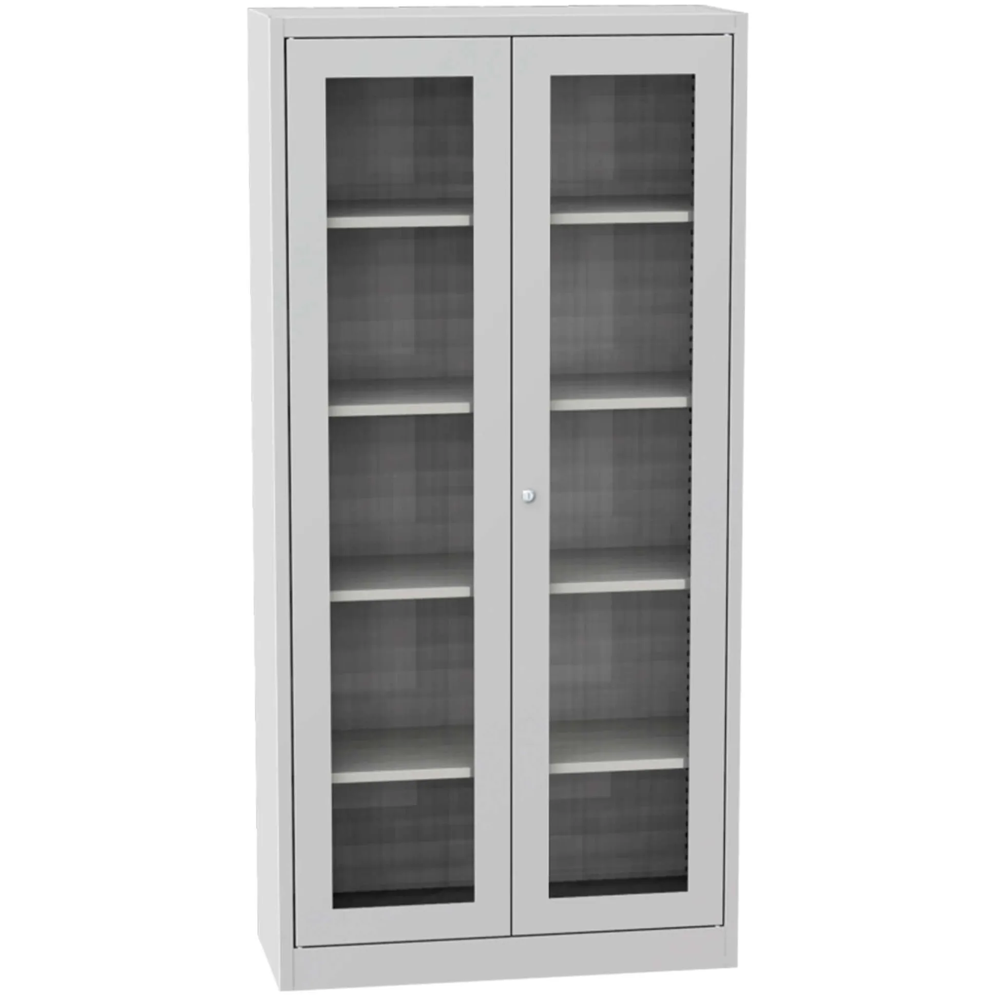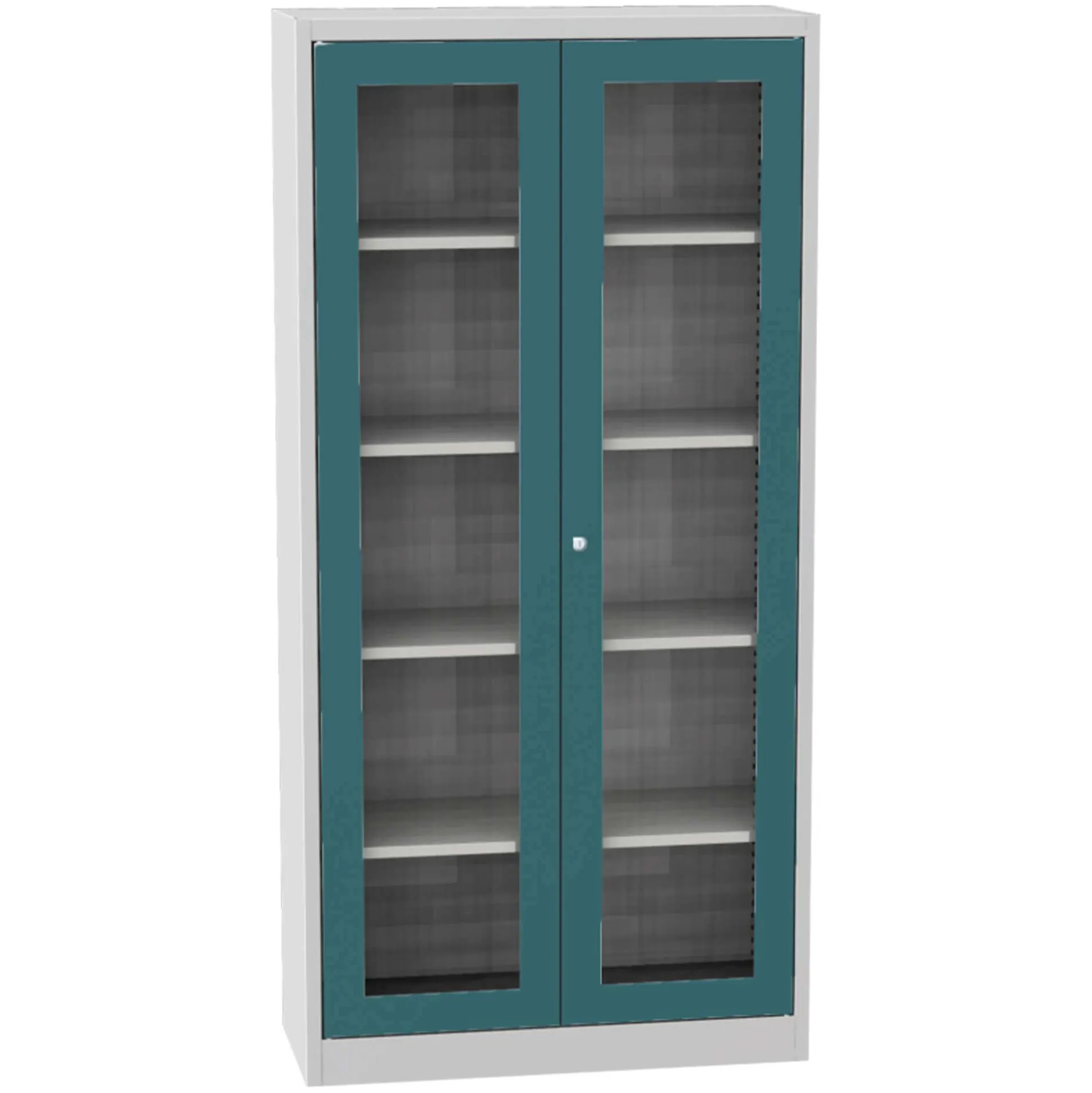 Arkilux II arkivskab med glasdøre. Skabet er svejst, i stål med 2 glasdøre. Arkivskabet kan rumme A4 brevordnere. Skabet er med cylinderlås med 2 nøgler og 4 flytbare hylder.