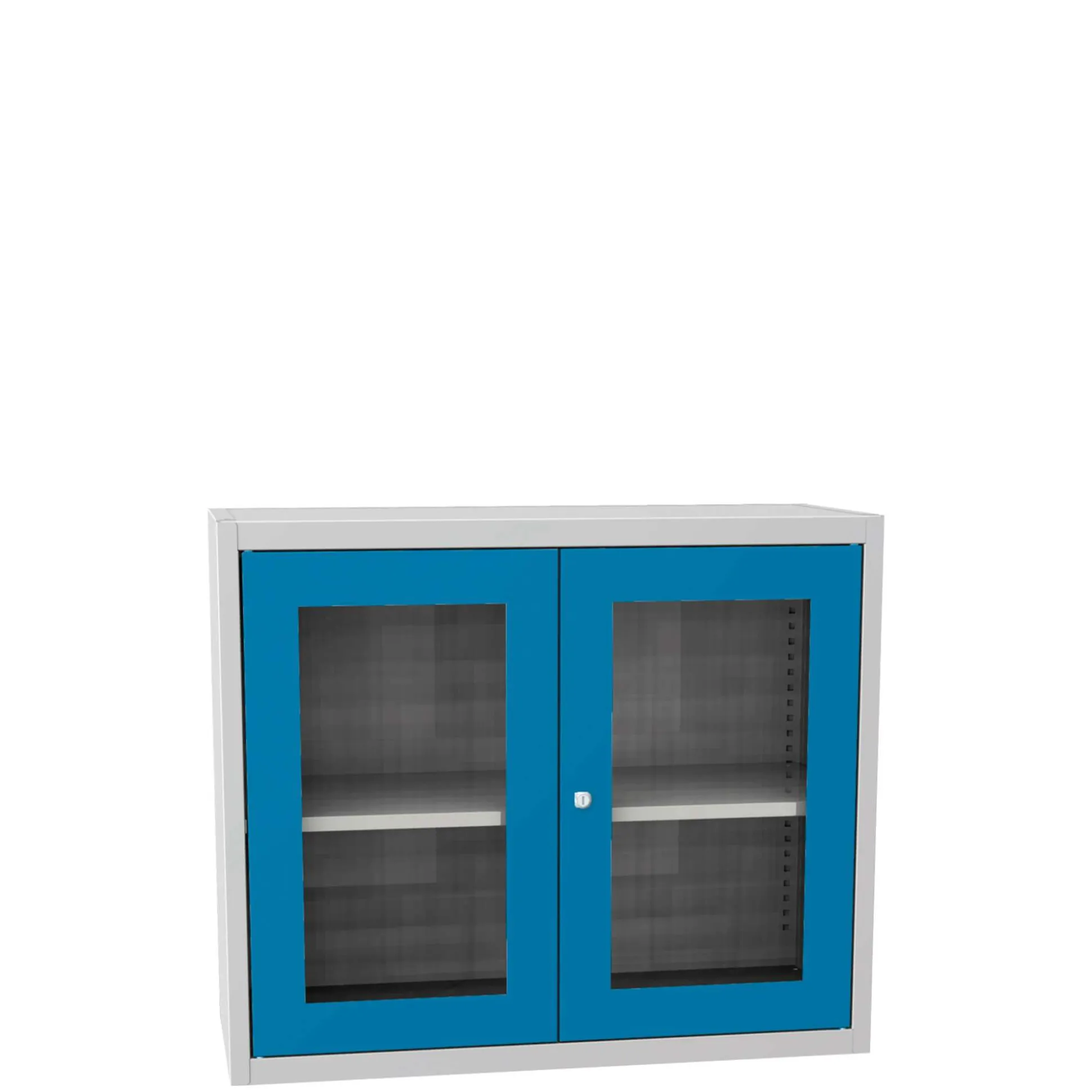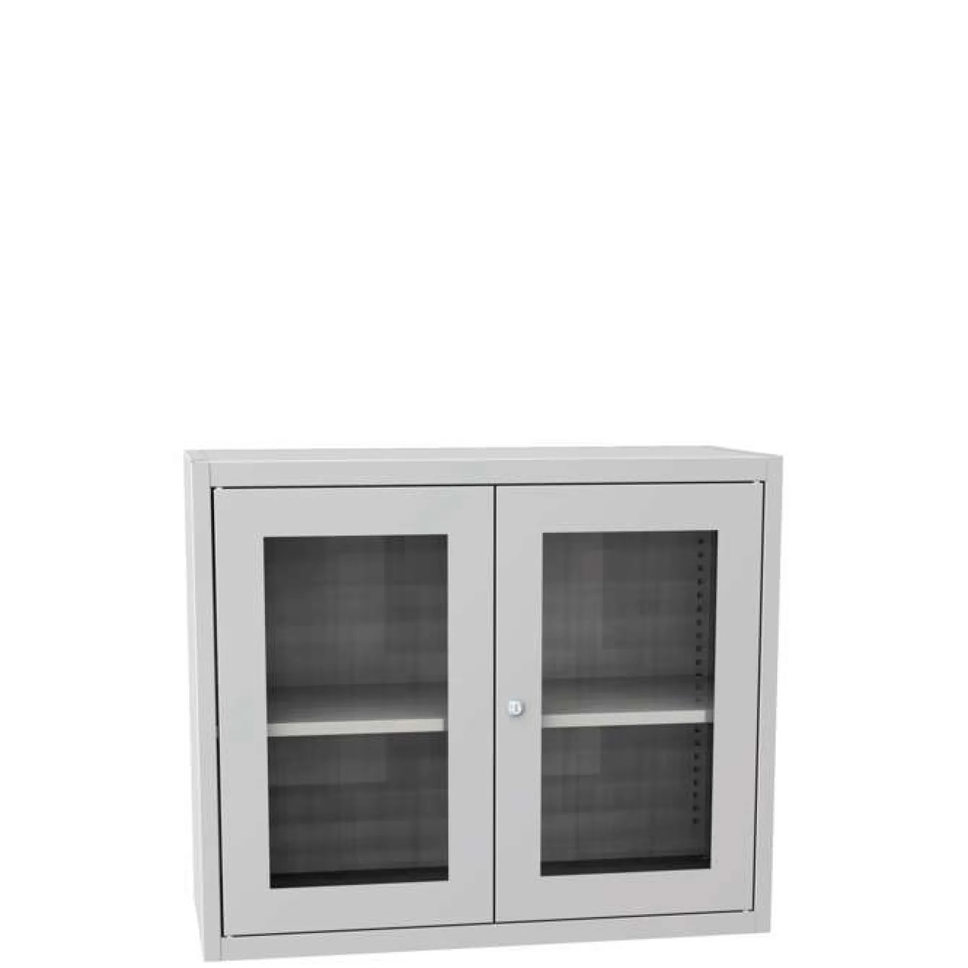 Arkilux II arkivskab med glasdøre. Skabet er svejst, i stål med 2 glasdøre. Arkivskabet kan rumme A4 brevordnere. Skabet er med cylinderlås med 2 nøgler og 1 flytbar hylde.