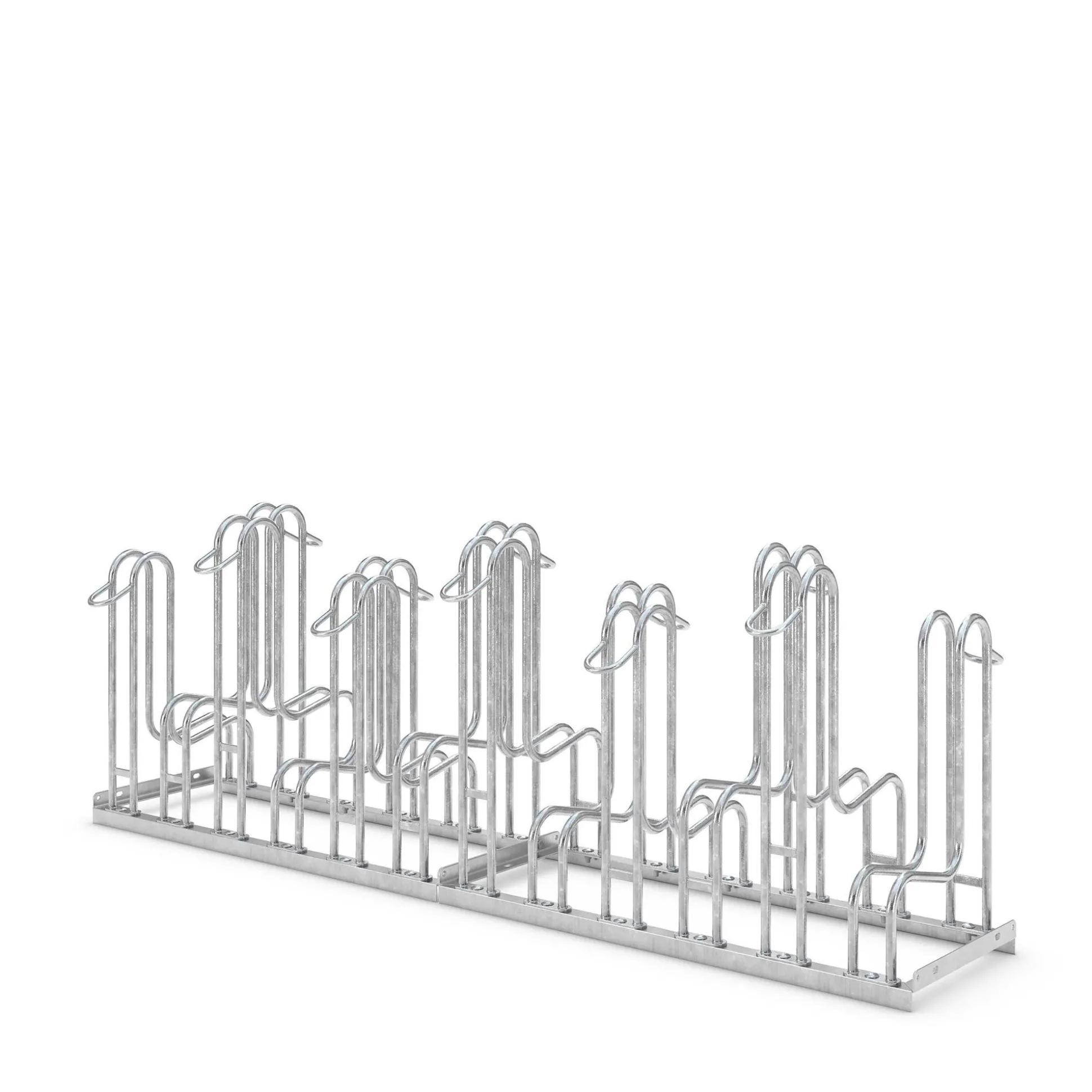 Cykelstativet er forberedt med monteringshuller, så det kan udvides med flere pladser. Kan lægges løst eller fastgøres til terræn. Beslag eller bolte til jordmontering købes separat.