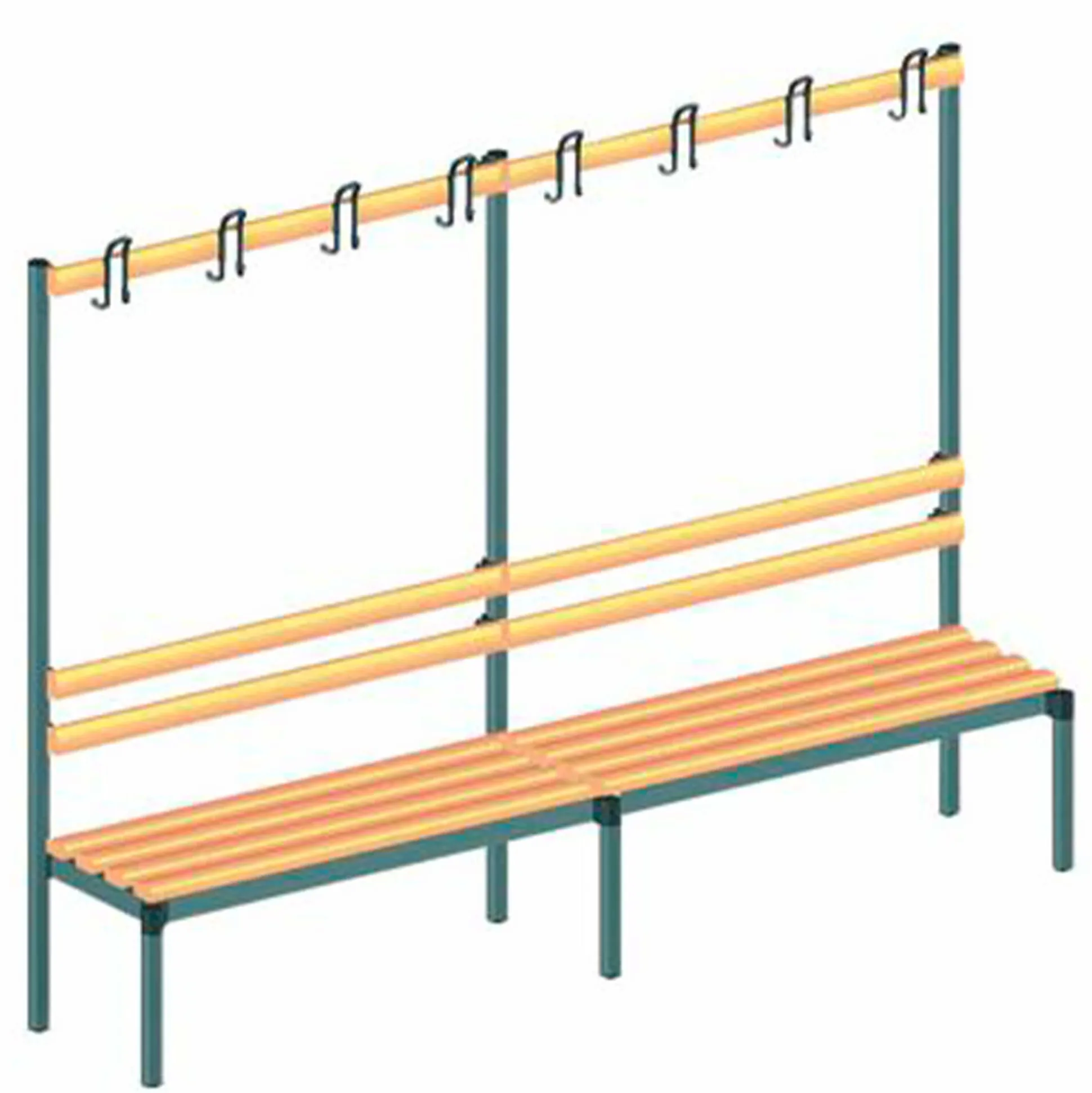 Bænken leveres som standard med bænksæder i hårdt træ, som er afrundet i toppen for bedre siddekomfort. Alle ben er med stilleskruer, så bænken ikke står og vipper, uanset underlag. Standardfarve: sortgrå. Leveres samlet.