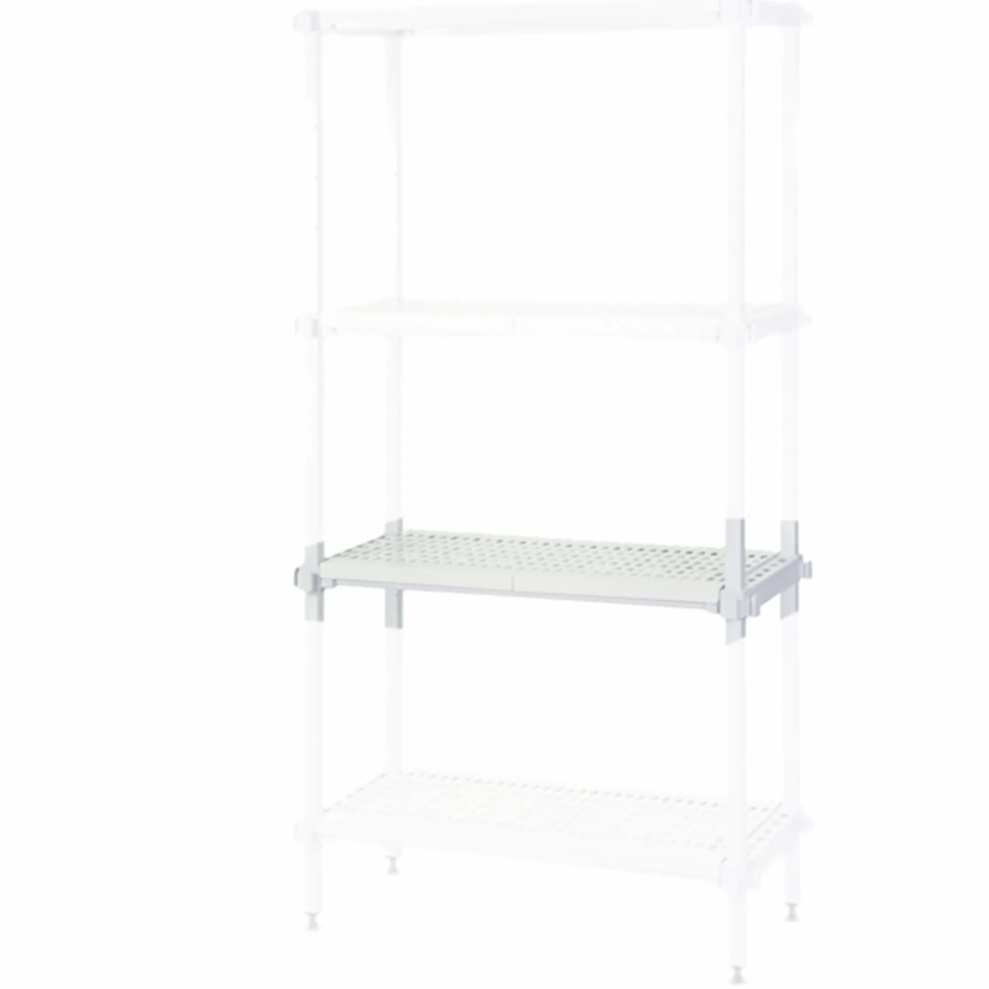 Består af 2 traverser, samt hyldebærere og hyldeplader (i polypropylene) som nemt kan afmonteres og vaskes i opvaskemaskine. Hyldepladerne er perforerede.