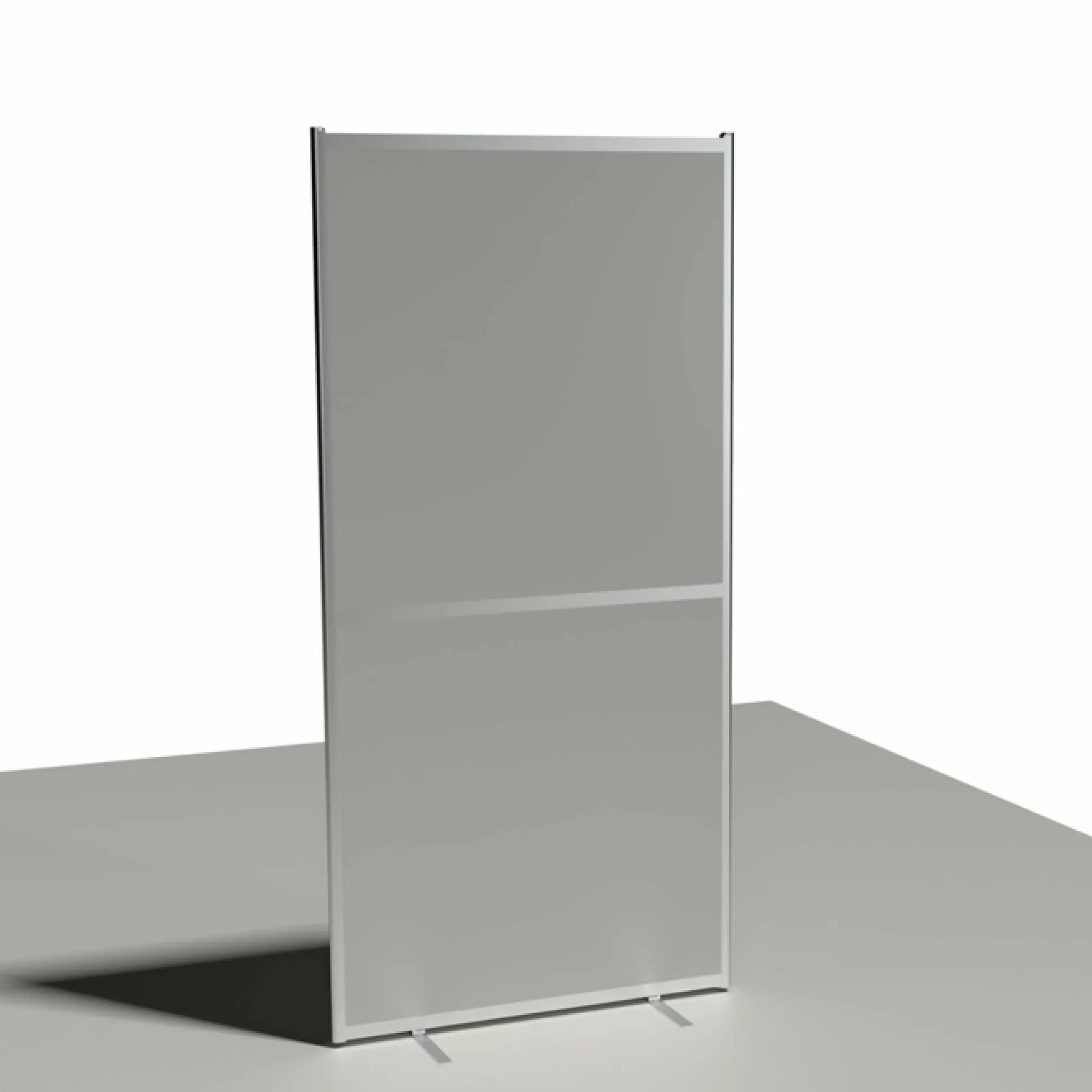 I serien Ultimate gulvafskærmning findes også afskærmning med 1 transparent og 1 grå panelplader eller transparent plade øverst, luge i midt og grå plade nederst. Se dem alle her.