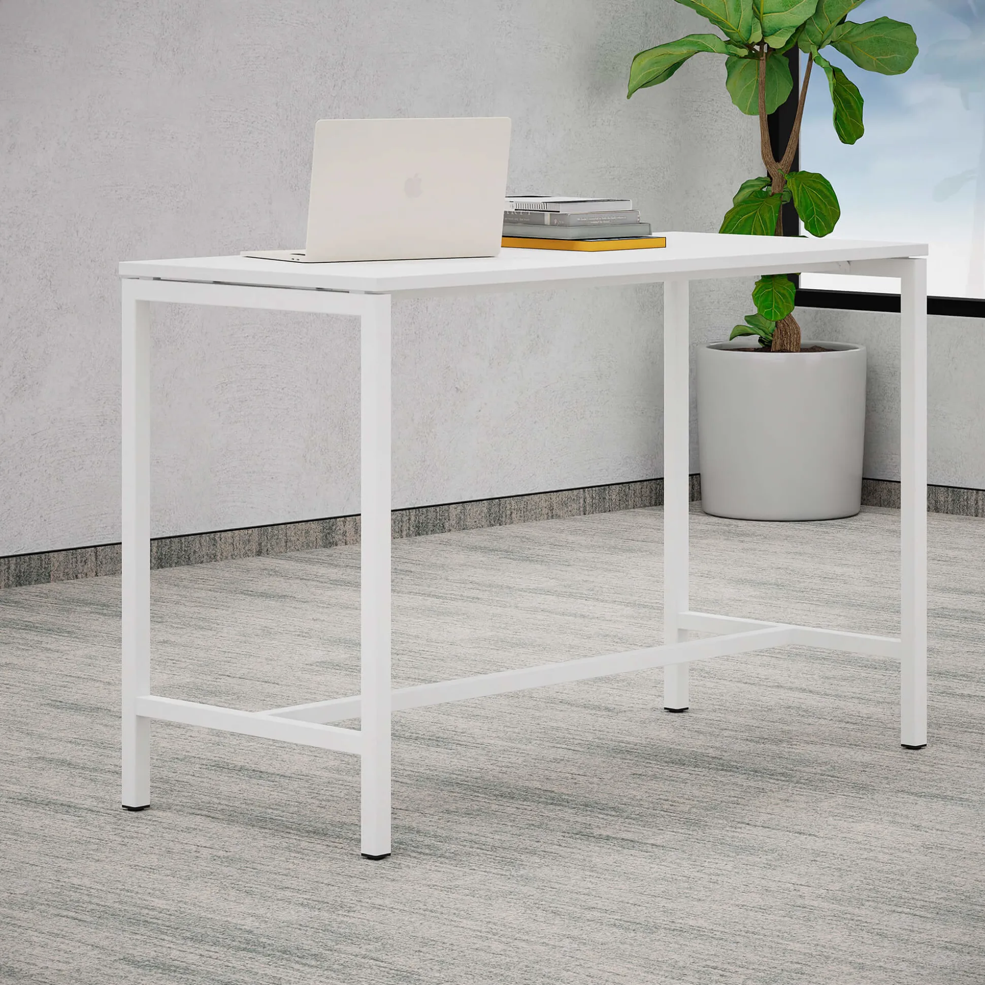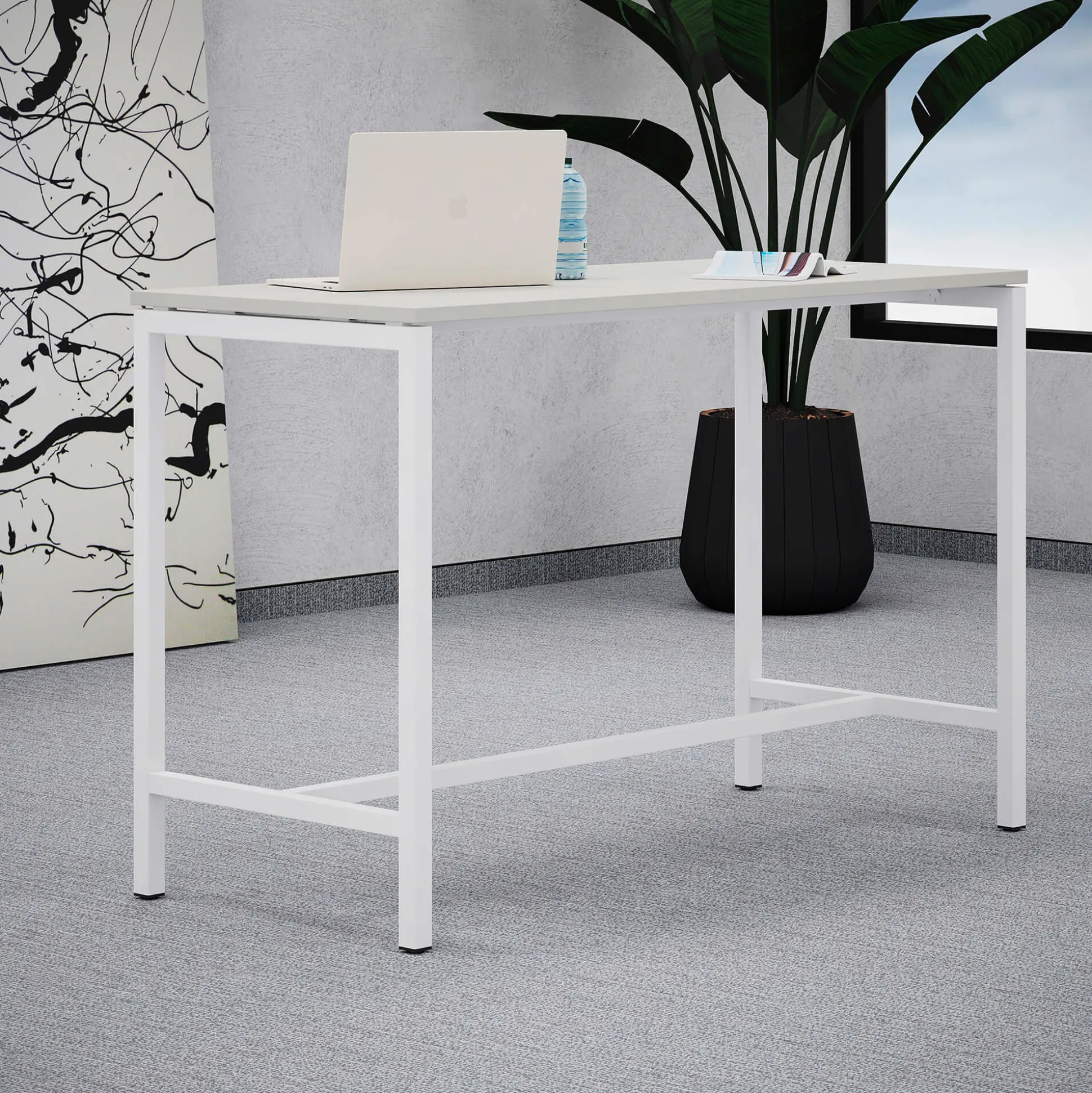 Monik er et stilrent højbord med en slidstærk decor laminat plade i 70×160 cm, bordet passer til 4 personer og stellet er hvid lakeret hvor pladen svæver for at give bordet et let look. Monik højbord er med sin højde på 105 cm, ideel til barbord eller hurtige møder.