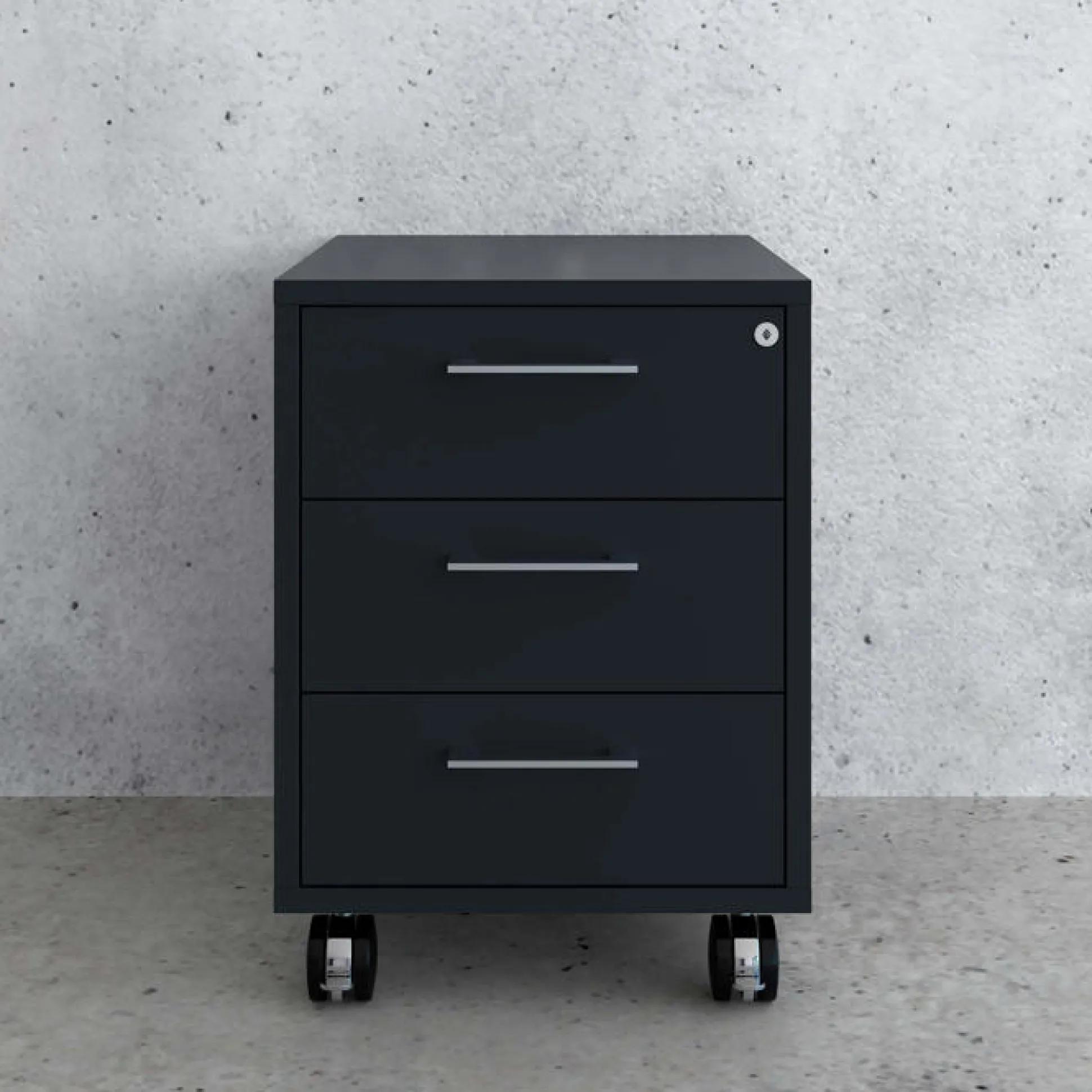 Denne Jive kassette er med 3 skuffer. Kassetten er med pennebakke og lås i øverste skuffe, der medfølger 2 stk nøgler.