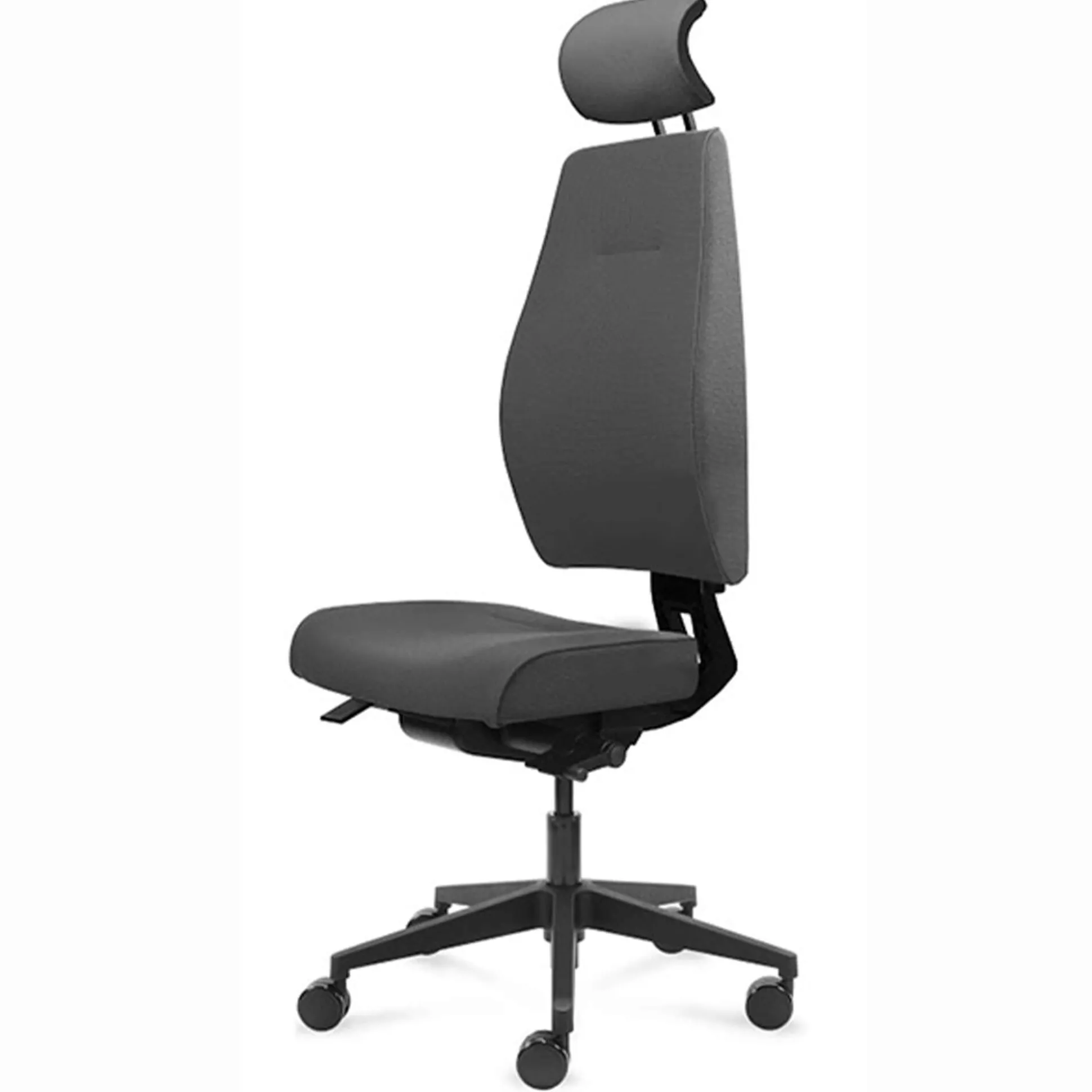 Magna er en lækker kontorstol med mange indstillingsmuligheder. Stolen har en høj ryg med en justerbar nakkestøtte. Stolen har højdejustering, sædedybejustering, lændestøtte, samt synkron vip med låsbar position. Stolen er polstret med Event stof. Fodkrydset på stolen er sort og har bløde hjul. Der kan tilkøbes armlæn, se relaterede varer.