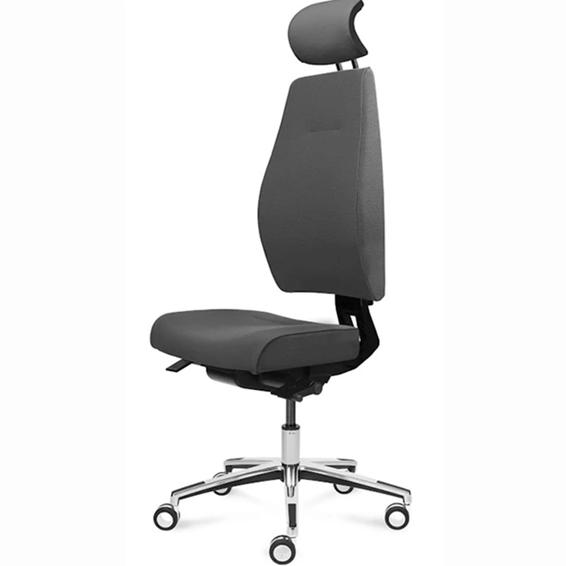 Magna er en lækker kontorstol med mange indstillingsmuligheder. Stolen har en høj ryg med en justerbar nakkestøtte. Stolen har højdejustering, sædedybejustering, lændestøtte samt synkron vip med låsbar position. Stolen er polstret med Event stof. Fodkrydset på stolen er blankt og har bløde hjul.