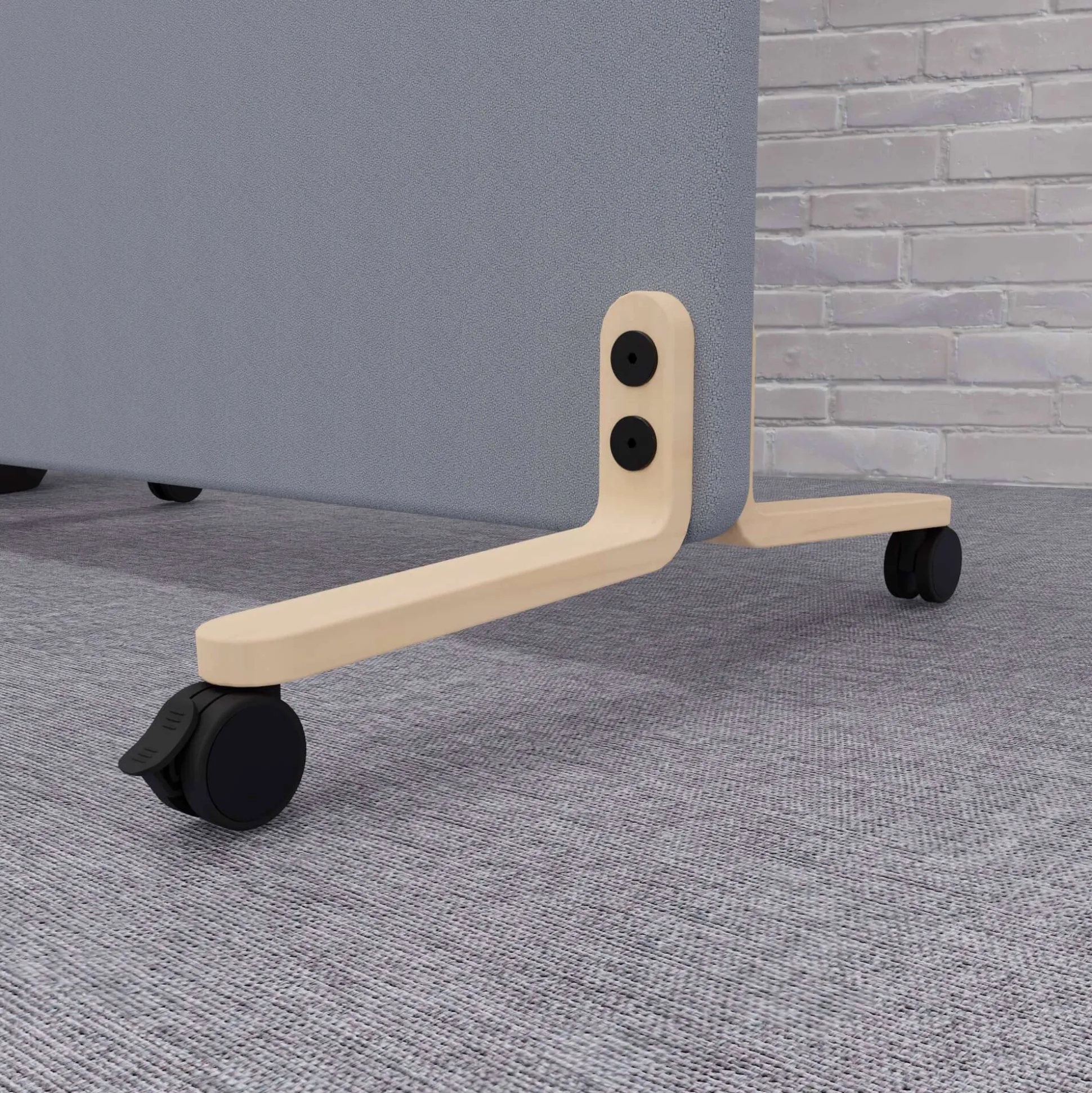 Denne mobile skærmvæg fås også i en model med klassiske fødder i pulverlakeret metal og stadigt med hjul. Disse fødder fås i farverne sort, hvid og sølv.
