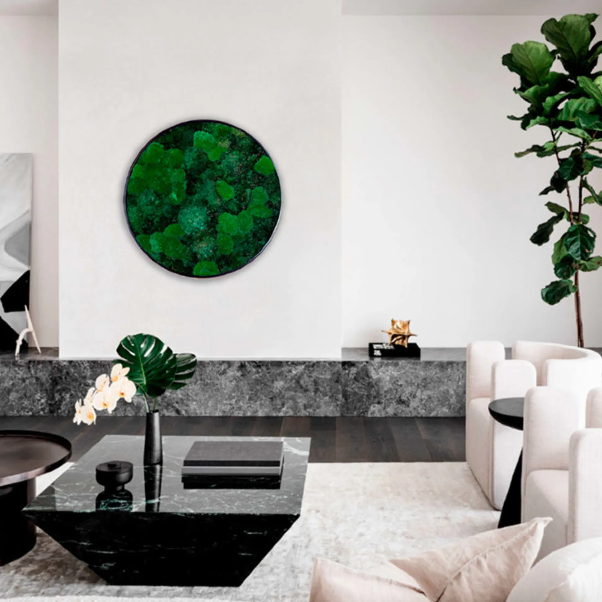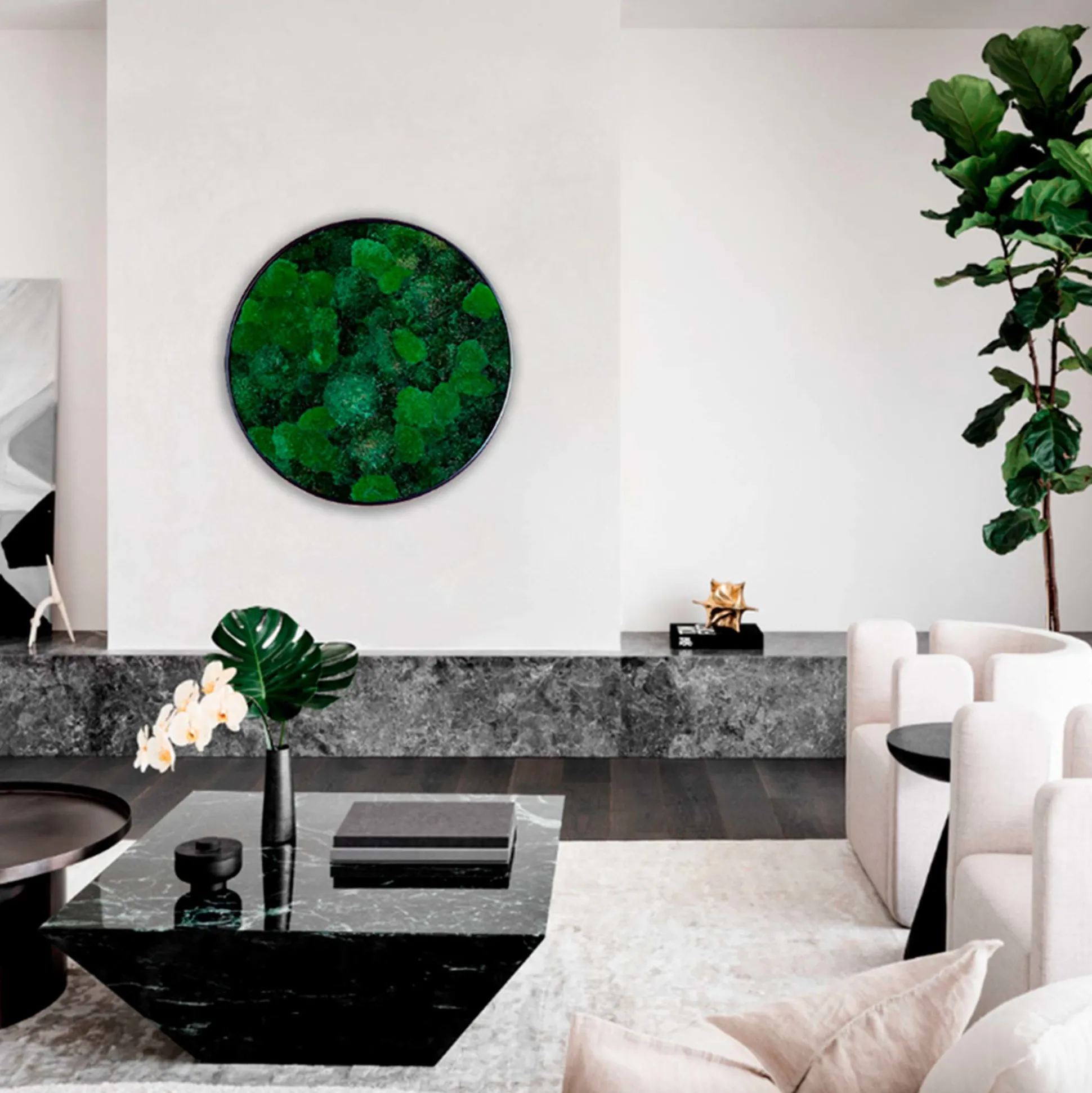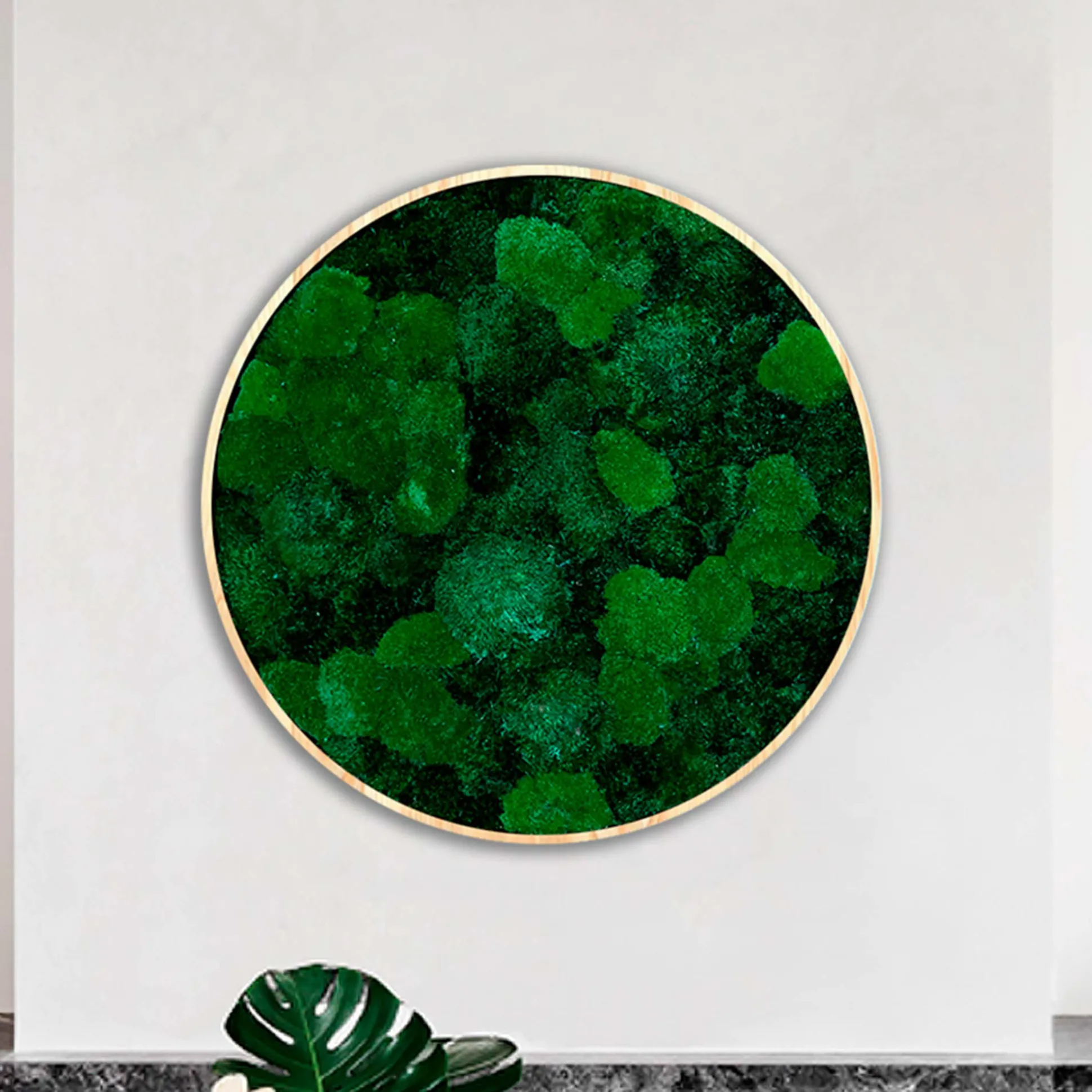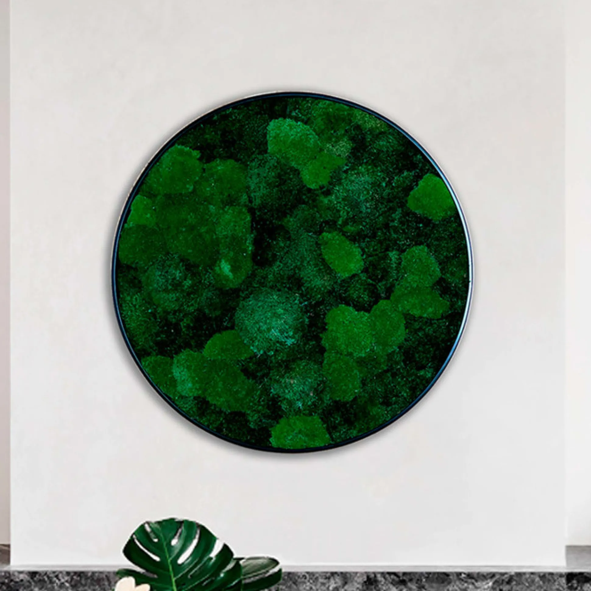 Eksklusivt Ø30 cm rundt mosbillede i et smukt mosmix