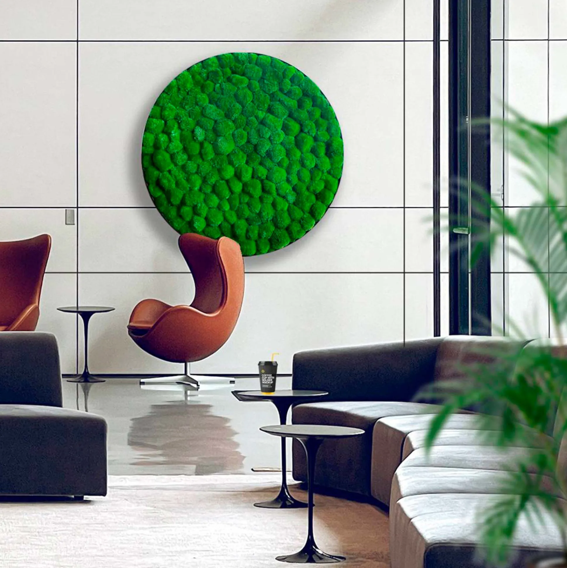 Det runde pudemos mosbillede er en smuk og unik måde at bringe naturen ind i dit hjem eller på kontoret. Med sin præserverede tilstand kræver det ingen vedligeholdelse, vanding eller lignende. Samtidig bidrager pudemos til at dæmpe rumklangen i rummet, hvilket forbedrer akustikken.