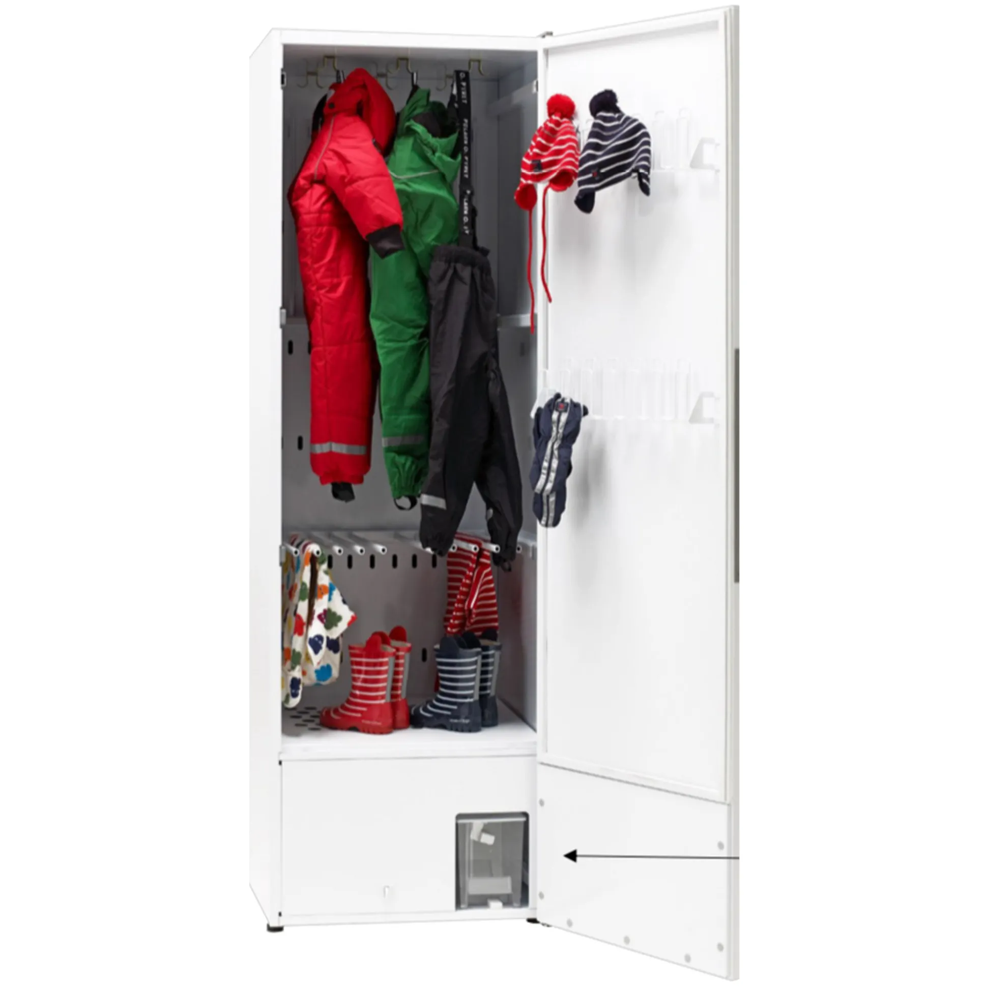 - 2 sektioner på indersiden af døren til tørring af vanter samt et udtageligt skostativ i bunden.