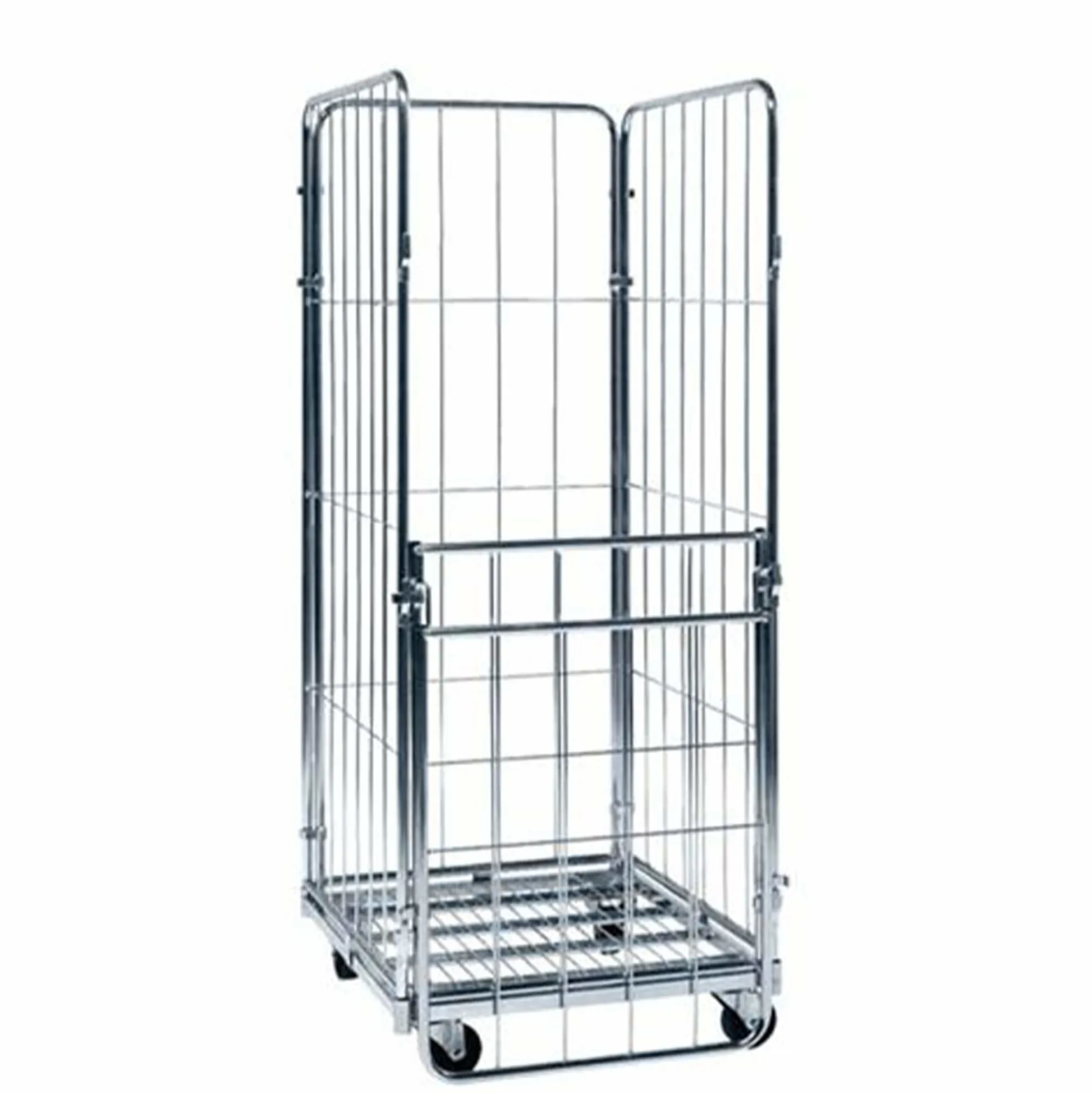 Transportbur med 4 vægge, hvor der er åbning på den ene 72 cm side, i form af en halvhængt låge. Leveres elforzinket. Med 4 hjul – heraf er 2 svingbare og 2 faste, Ø 10 cm. Samles uden brug af værktøj.