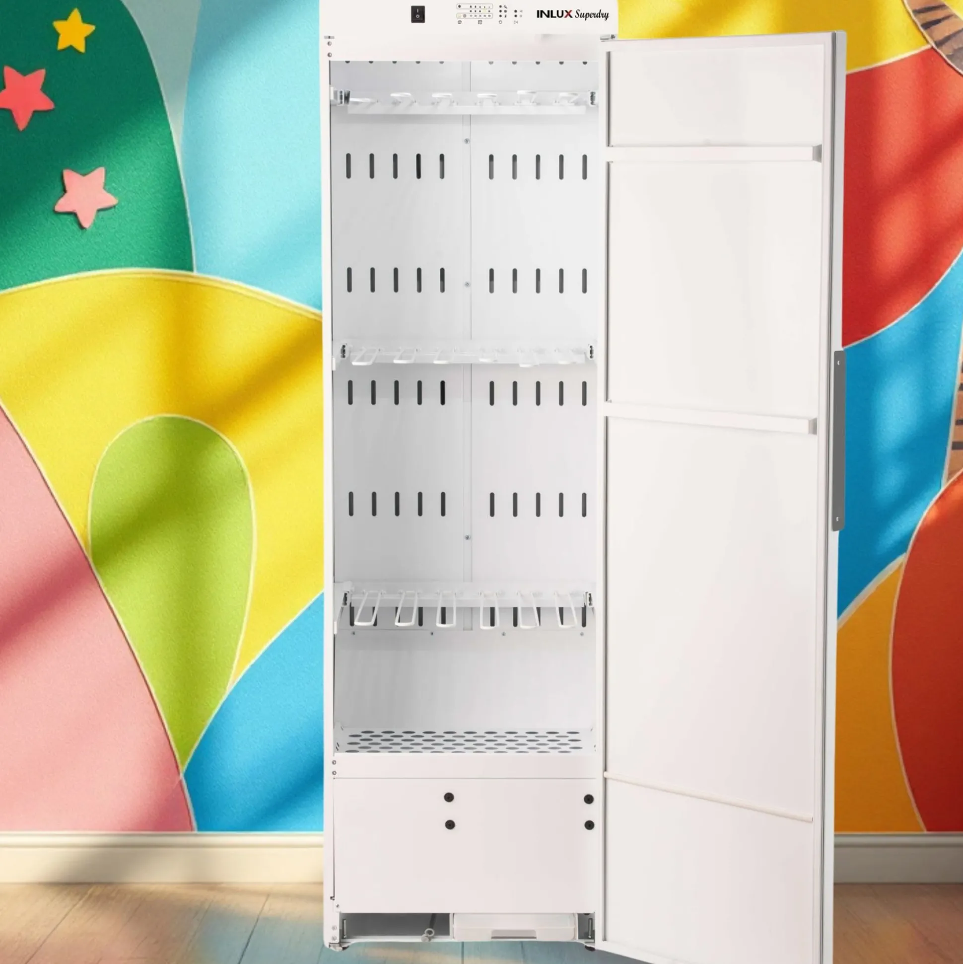 INLUX Superdry tørreskab INDC8600HPWR ECO er perfekt til tørring af sko, jakker, regntøj, flyverdragter, termodragter og uniformer. Med avancerede funktioner som sensorstyring, varmepumpeteknologi og fleksible bøjler sikrer dette tørreskab optimal tørring hver gang.